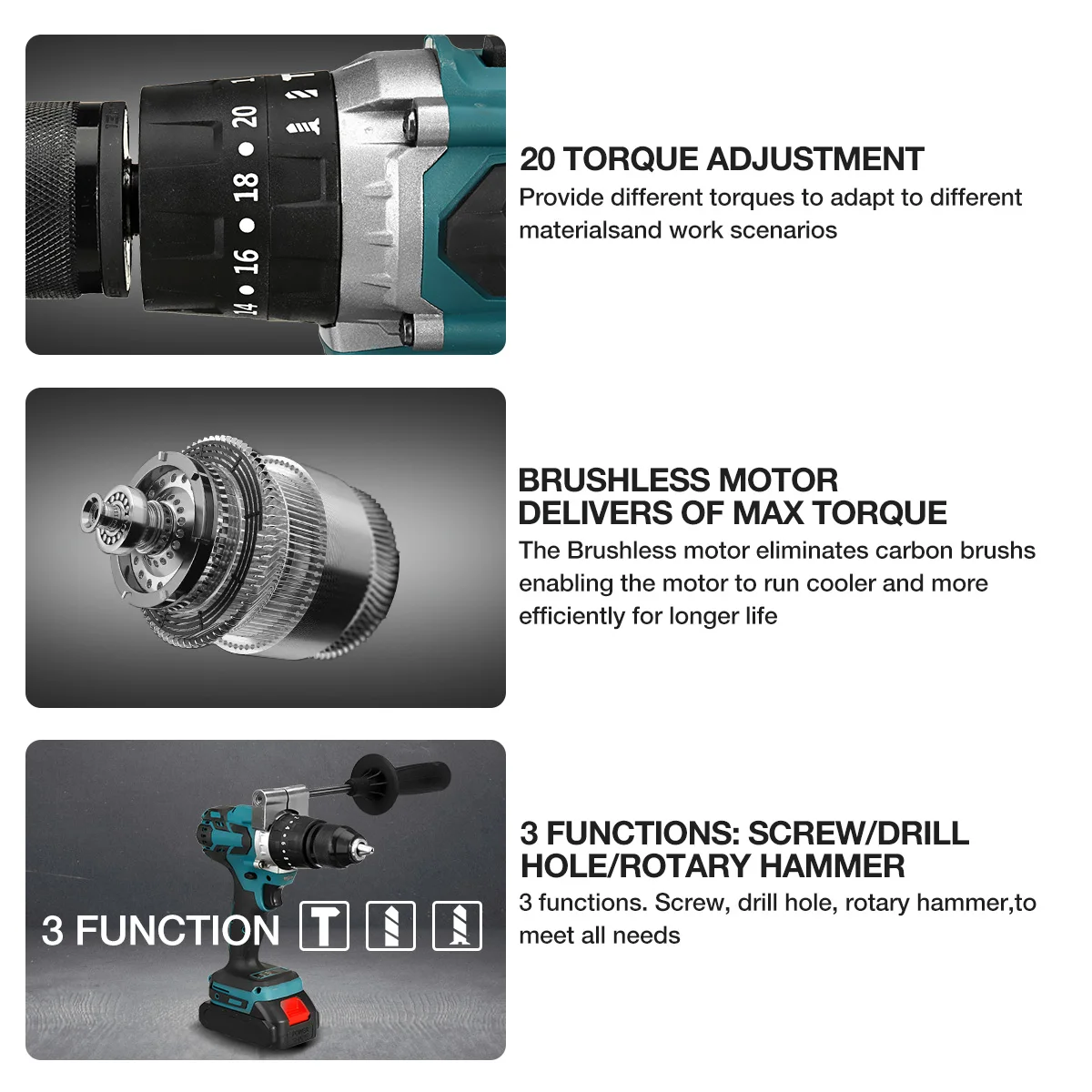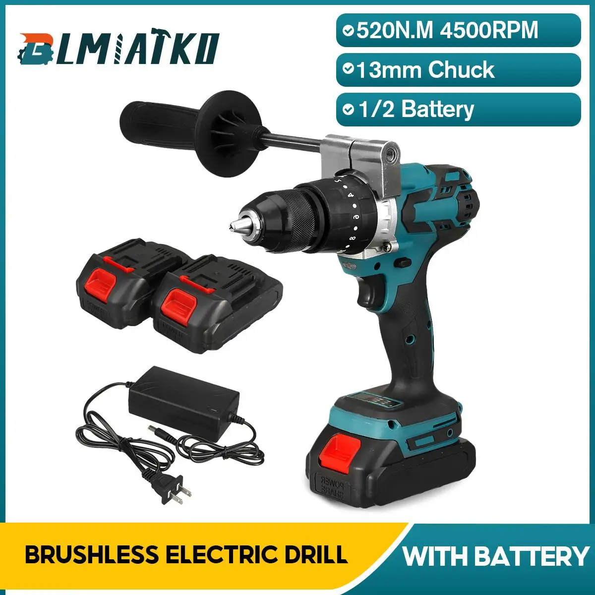 Бесщеточная электрическая дрель 20 крутящий момент 520N.M шуруповерт 13 мм патрон литий-ионный аккумулятор электрическая шуруповерт дрель