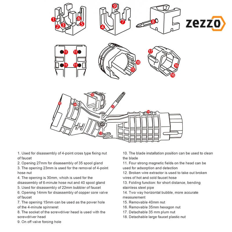 Номер модели18 in 1 Faucet And Sink Installer Tool