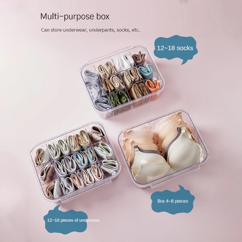 Ящик для нижнего белья, органайзеры с клеткой, яркая коробка, подходит для одежды, бюстгальтеров, носков, серый, прозрачный