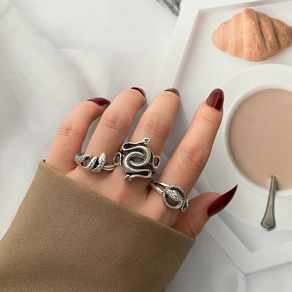 Набор Колец FNIO в стиле панк, готика, Бабочка, змея, Женское кольц...