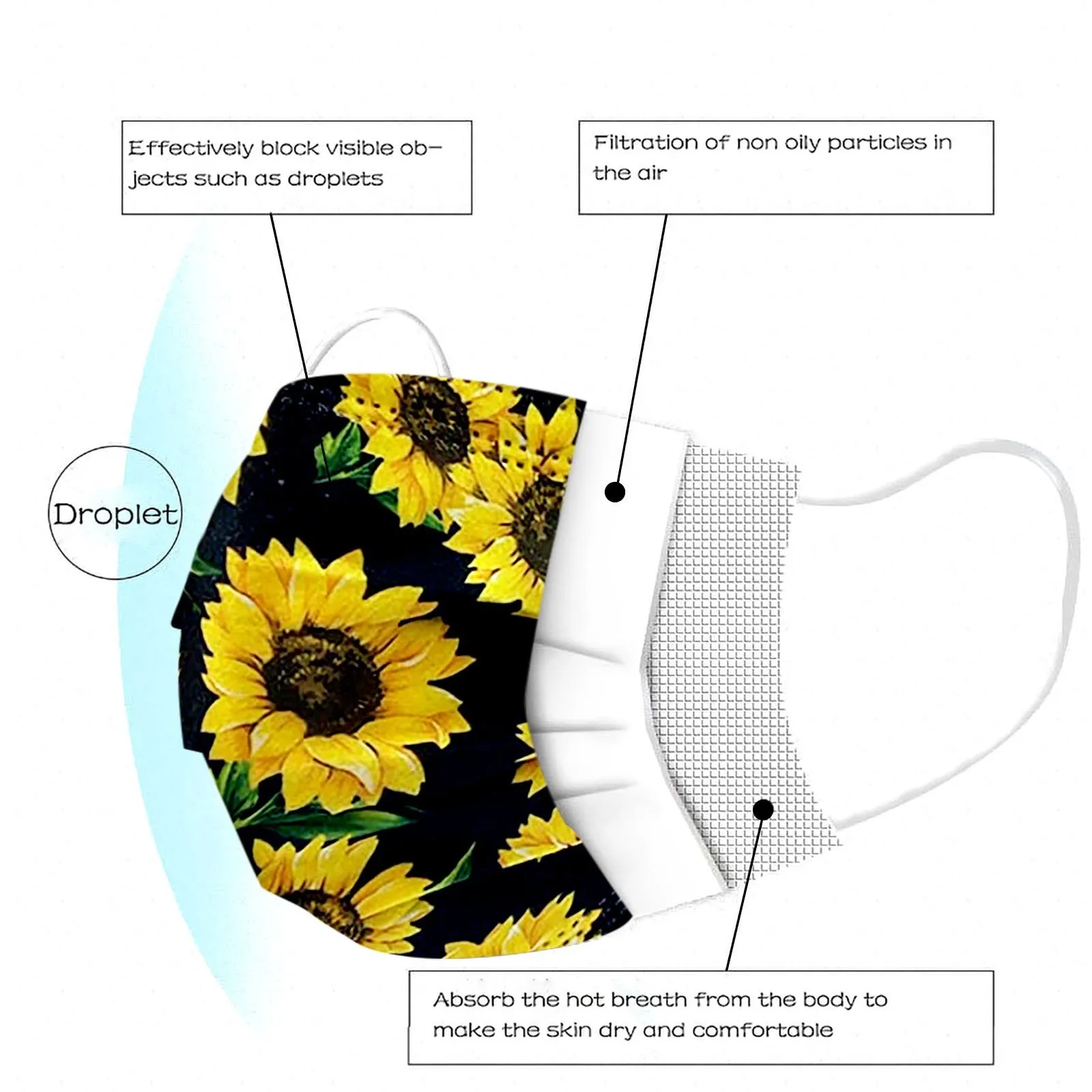 50 шт., одноразовые маски для взрослых, с принтом подсолнухов