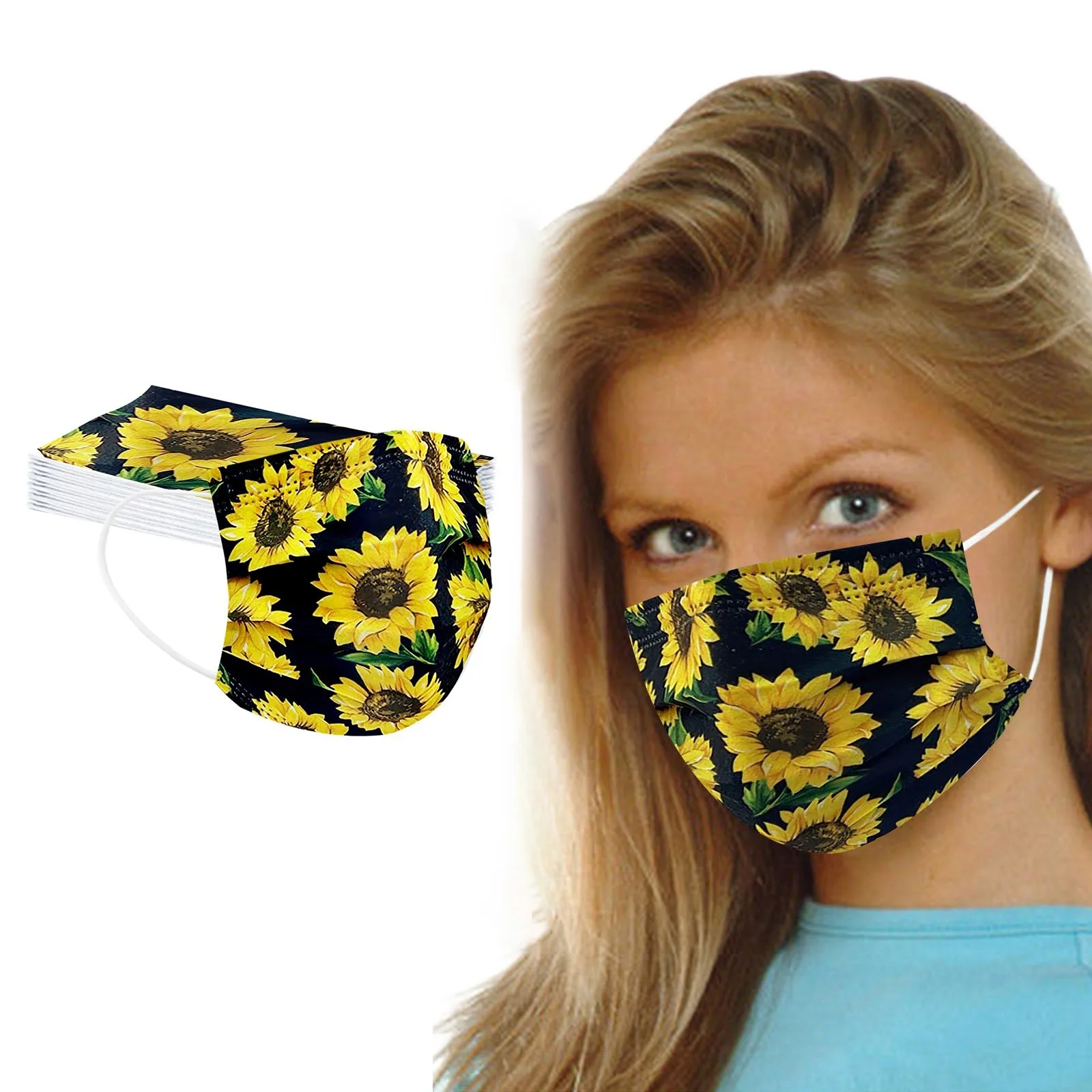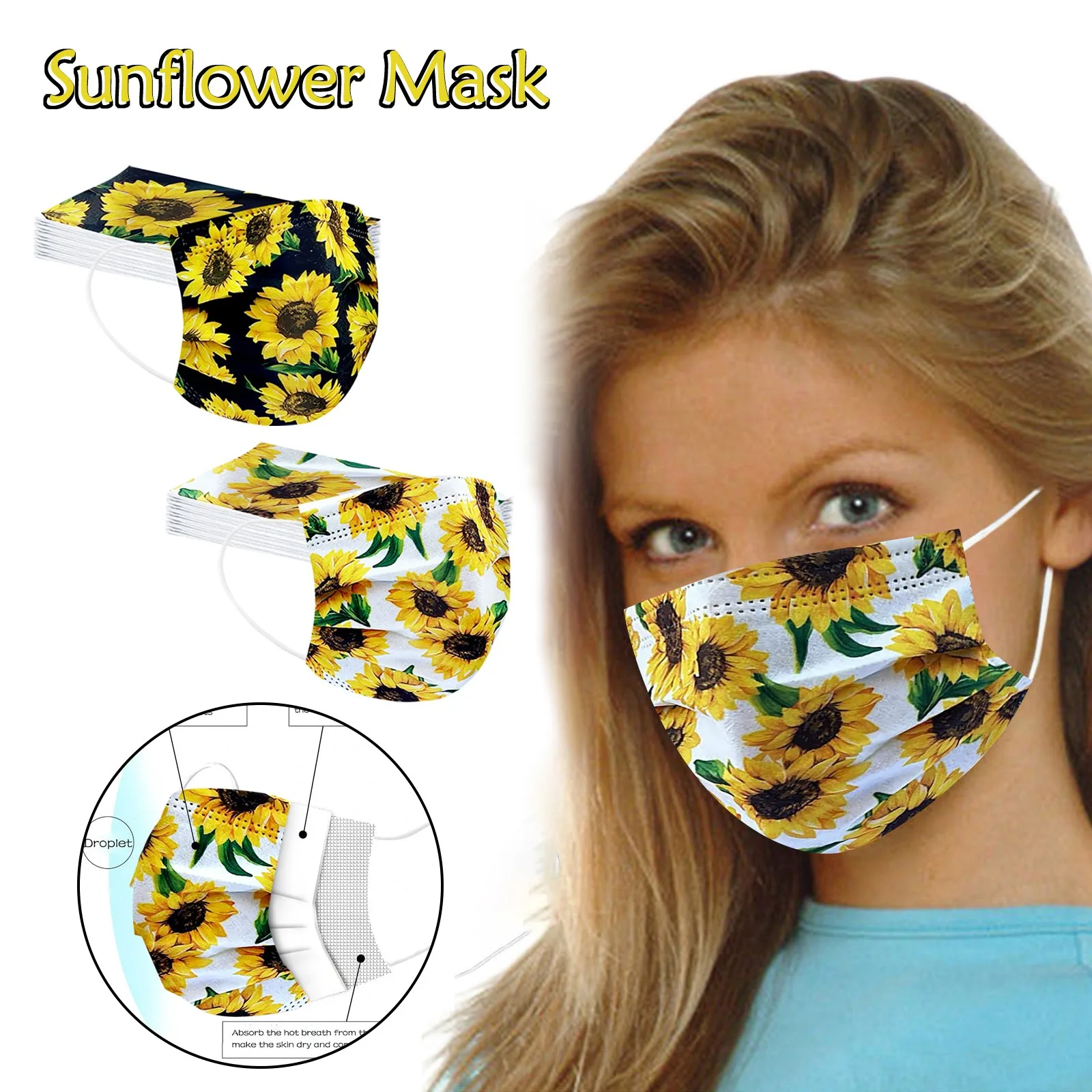 10 шт напечатанные одноразовые защитные маски дышащие маски подсолнуха