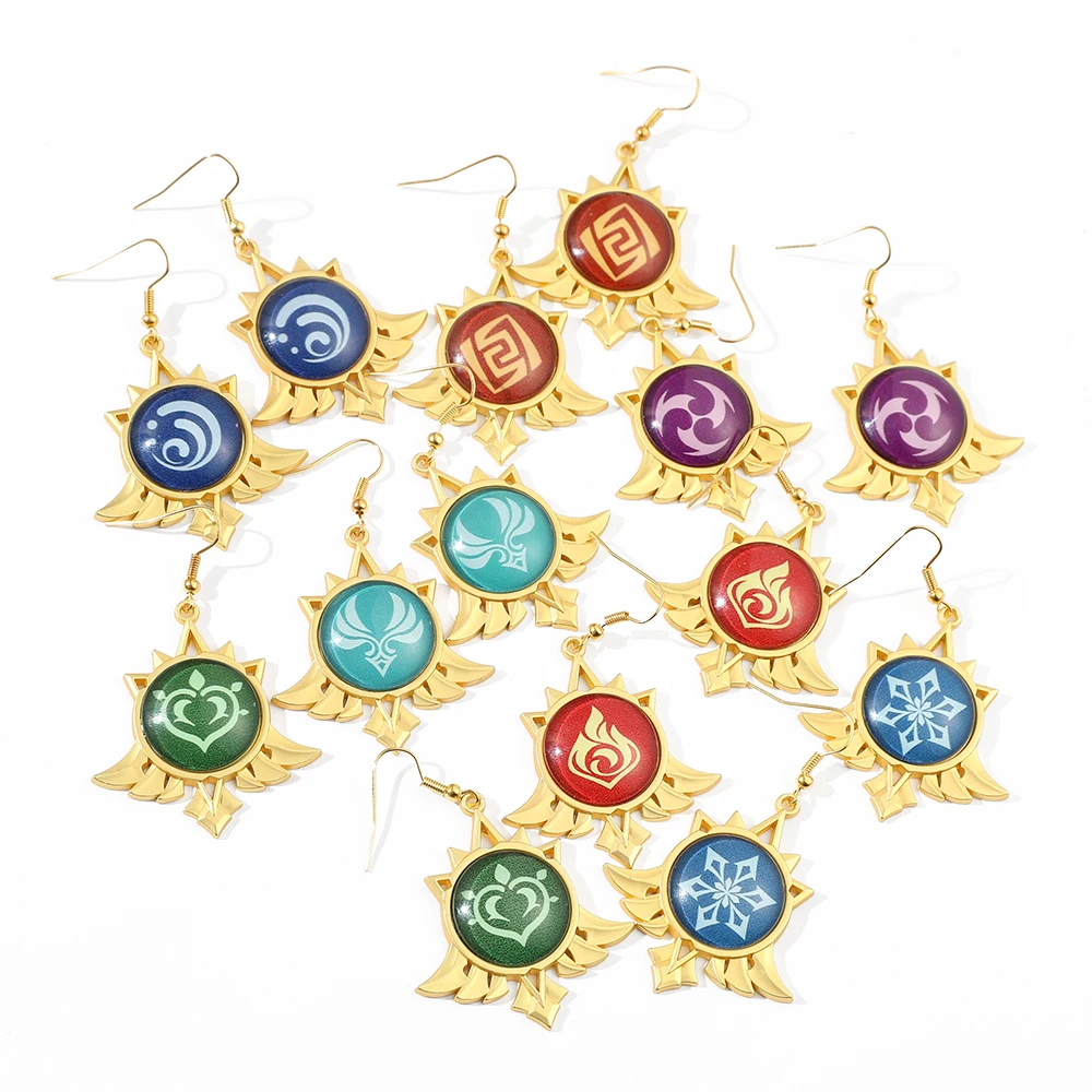 Игра Genshin ударные серьги женские вода ветер Гром огонь элемент моды ретро мультфильм косплей ювелирные изделия подарки для друзей