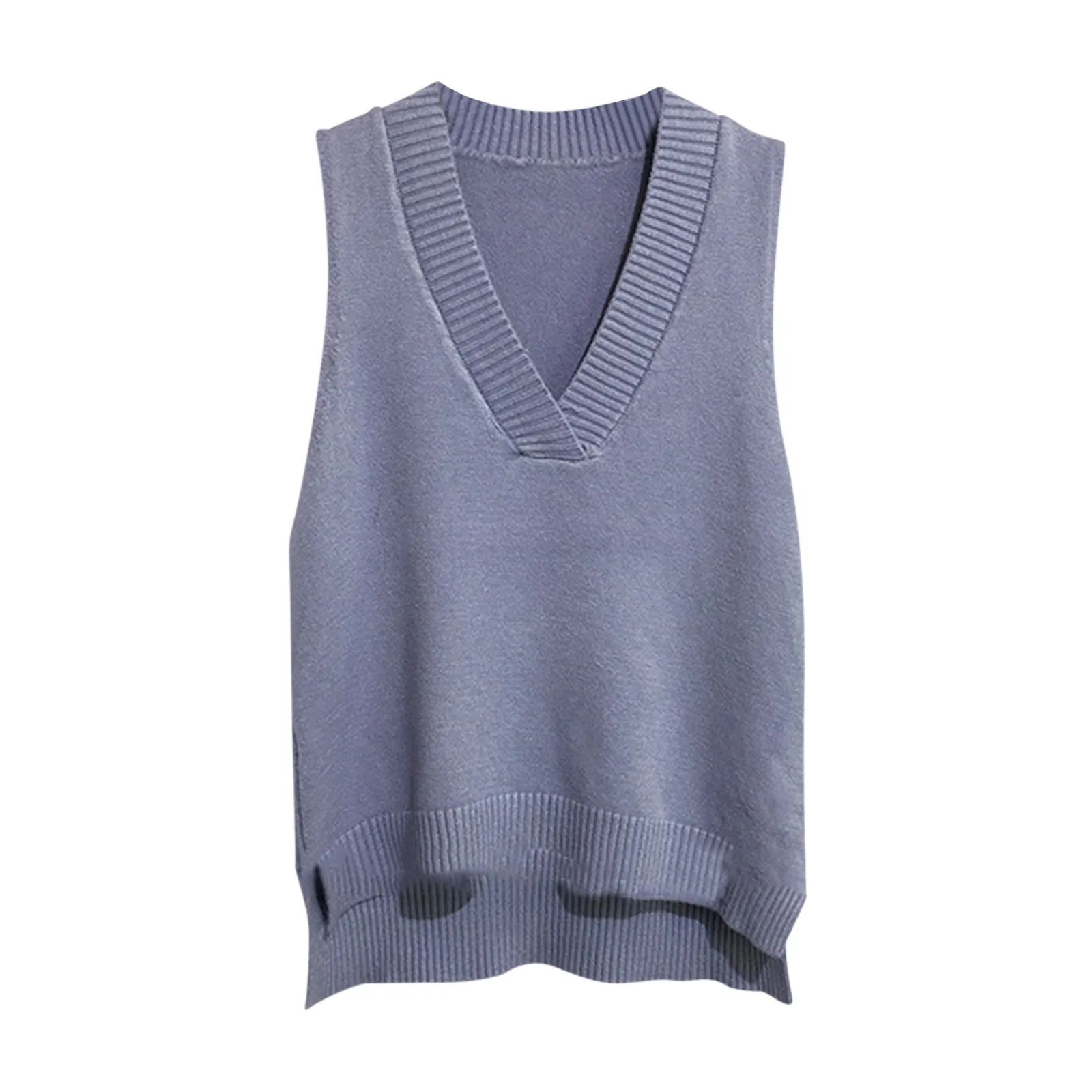 【Особенности】 Жилет с v-образным вырезом, Свитера без рукавов, трикотажные топы свободного кроя. Модный Вязаный свитер обожает современных женщин.