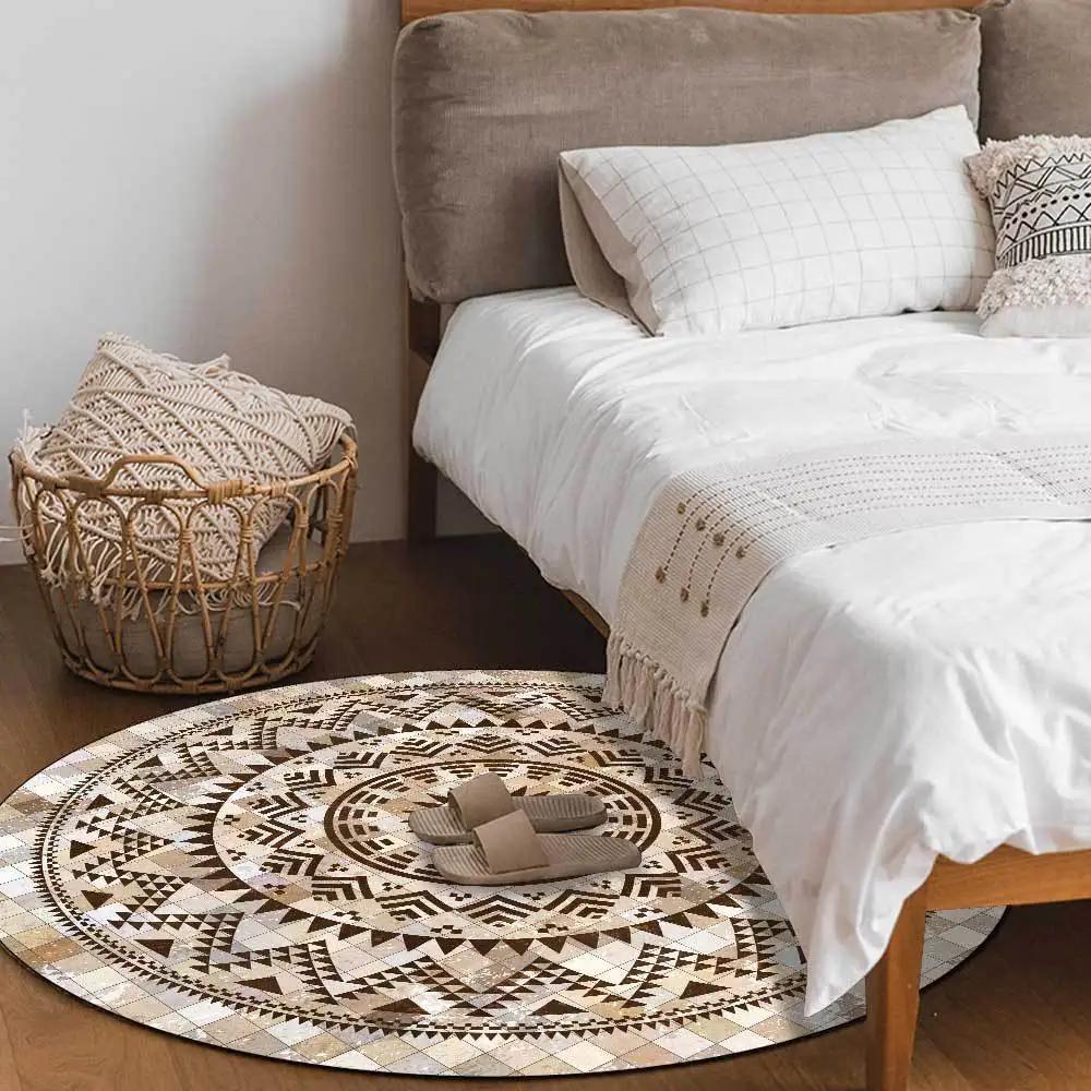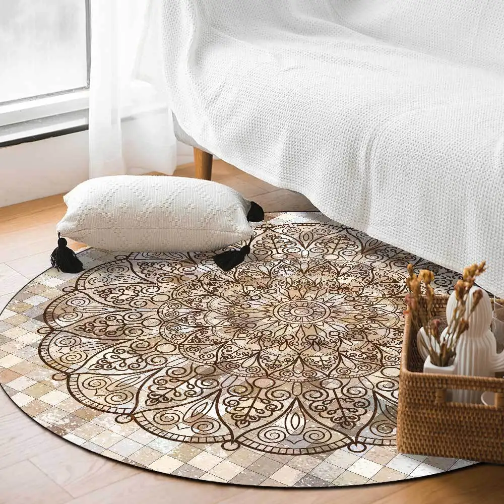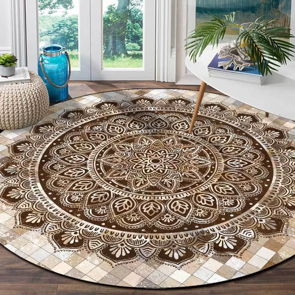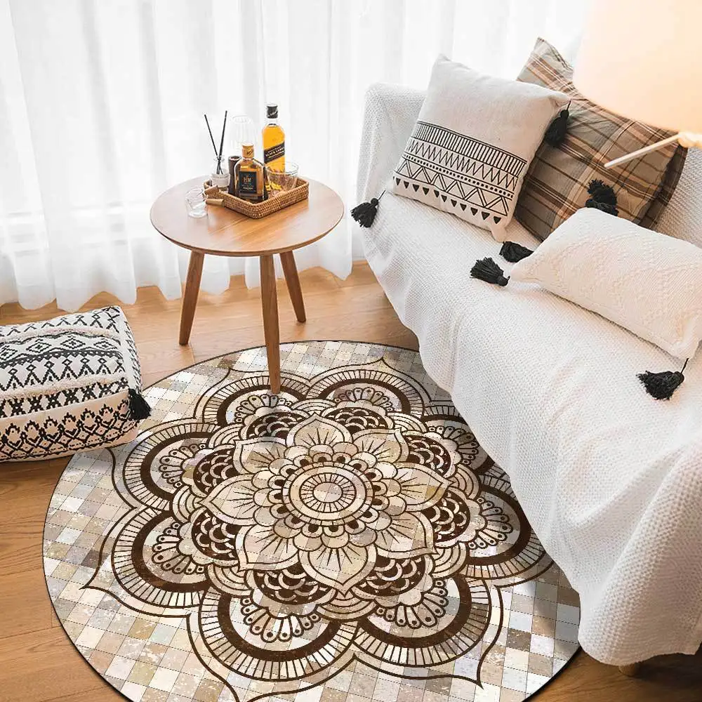 Круглый ковер с геометрическим принтом для дома, гостиной, фланелевые рандомные этнические противоскользящие напольные коврики с мандалой, коврики для гостиной