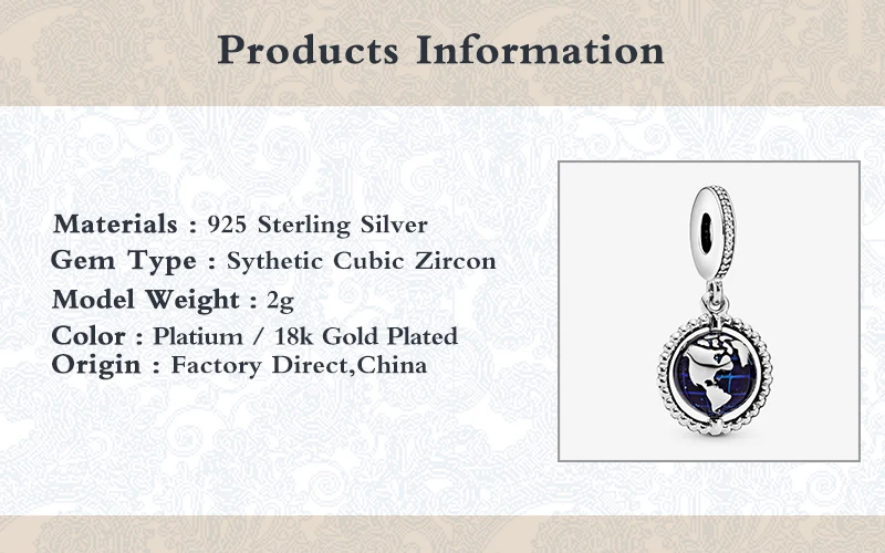 MC 925 стерлингового серебра бисера для женщин девушек синий глобальная карта милый DIY бисер Подходит оригинальный Пандора браслет для женщин ювелирные изделия подарок
