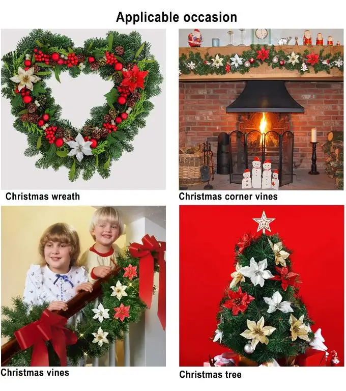 -Искусственные рождественские цветы с блестками, легко крепятся к дереву, могут отображаться, увеличивая праздничную атмосферу на Рождество