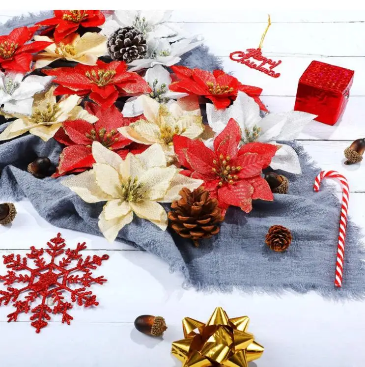 10 шт. блестящие украшения для рождественской елки Poinsettia