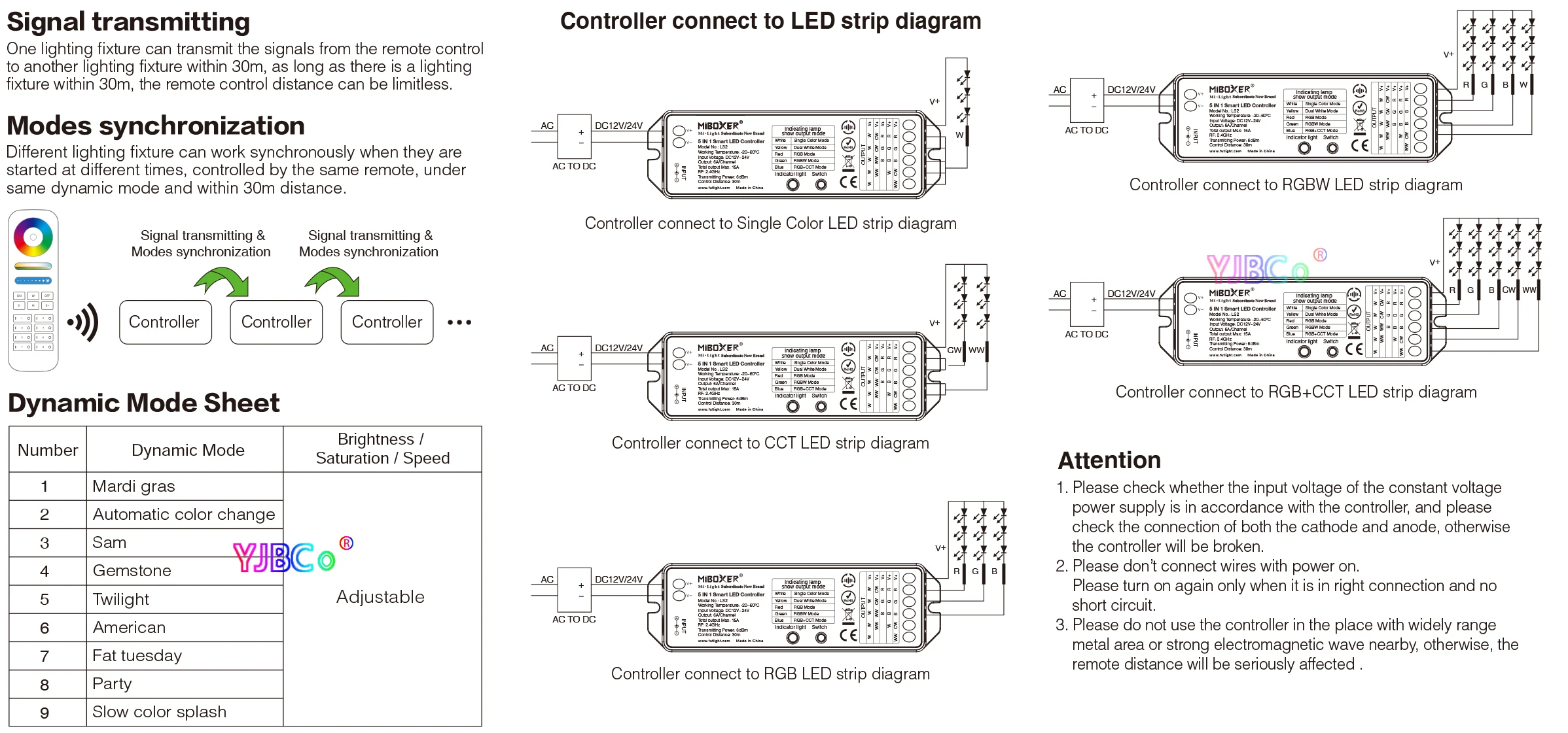 Применимые светаSingle color/CCT/RGB/RGBW/RGB+CCT LED Strip