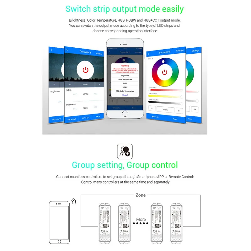 Контроллер Moboxer LS2 5 в 1, ОдноцветныйCCTRGBRGBWRGB лампа CCT, д...