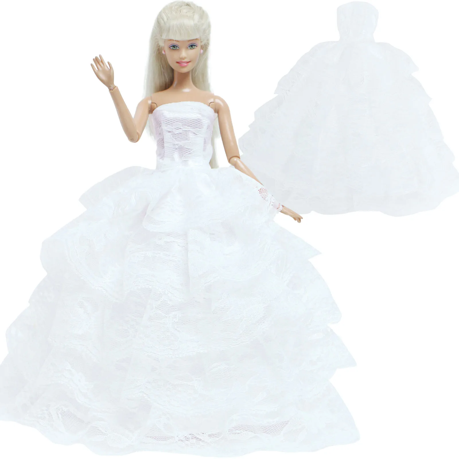 1 комплект, Кукольное платье ручной работы, белое 5-слойное кружевное свадебное платье, юбка, женская одежда для Барби, строительный подарок