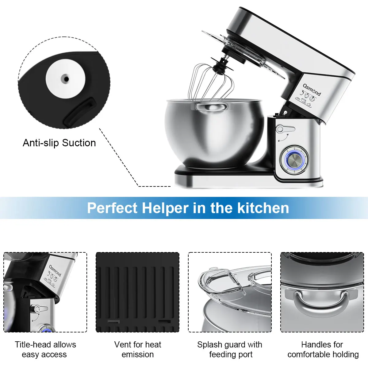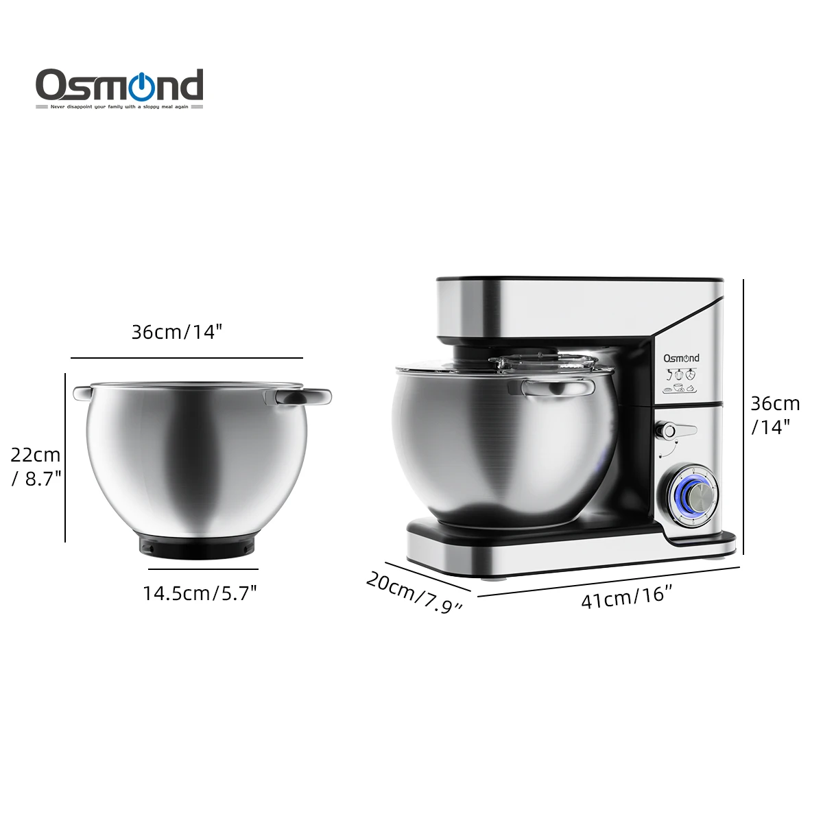 Посылка1x хост-машина1x венчик1 шпатель1 крючок для теста1 плоский венчик1x крышка от брызг1 чаша из нержавеющей стали 3041 Инструкция по эксплуатации на английском языкеСпецификация:Бренд: OSMONDМодель: SC-623Мощность: 2000 Вт