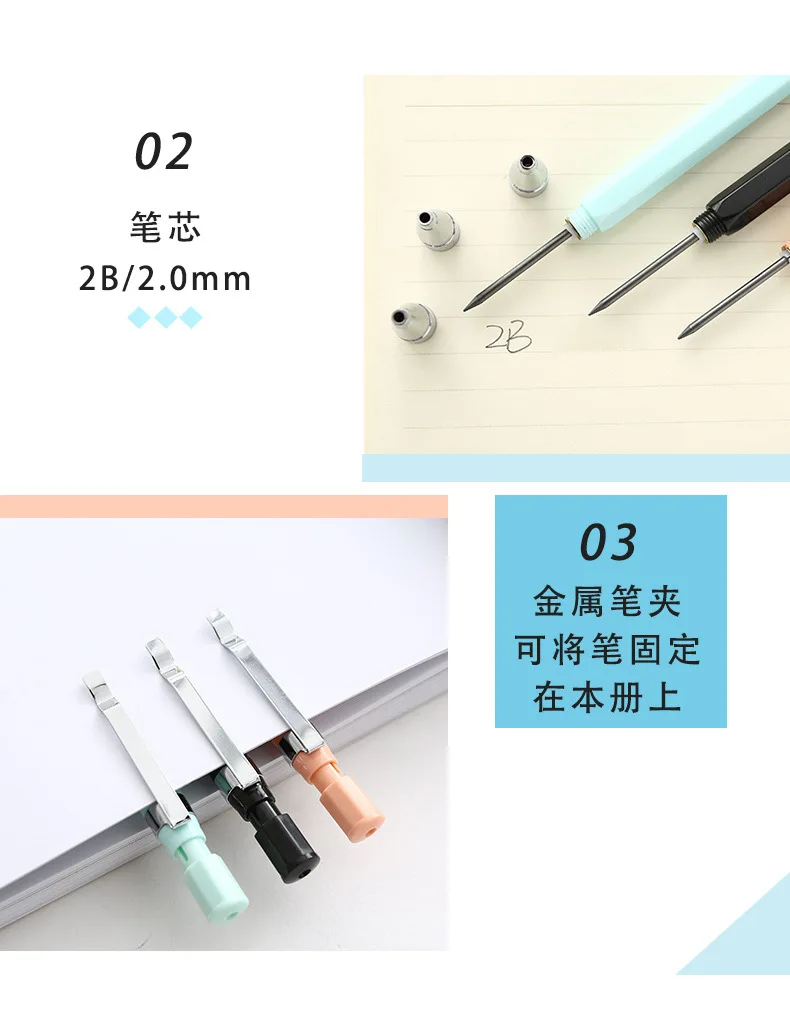 1 шт. механический карандаш, сменный стержень 2,0 мм, черныйсинийрозовый автоматический карандаш для рисования на экзаменах