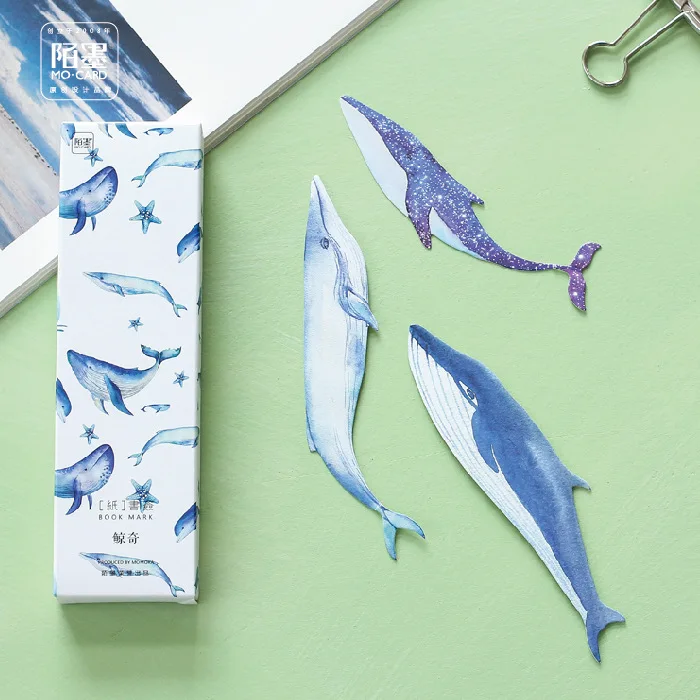 Бумажная Закладка в виде большого чудесного Кита и рыбы, 30 цветов, канцелярские закладки, держатель для книг, карточка для сообщений, школьные принадлежности, бумажные принадлежности