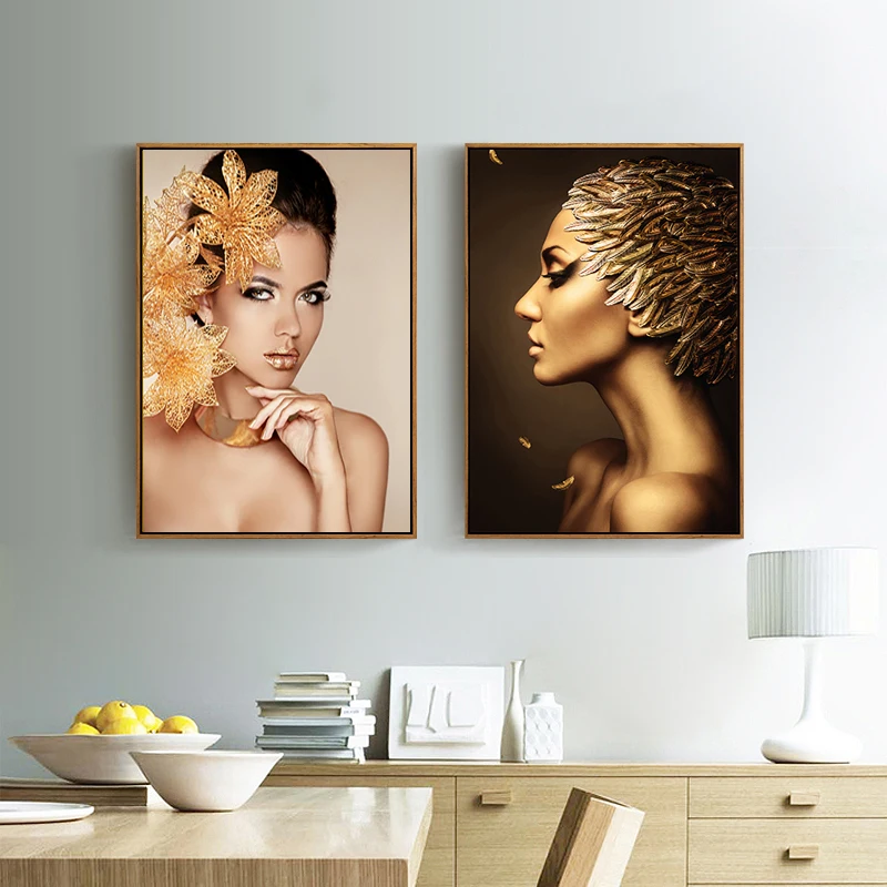 Постер золотого цвета с изображением сексуальной женщины, домашний настенный Декор, живопись на холсте и роспись, эстетические картины
