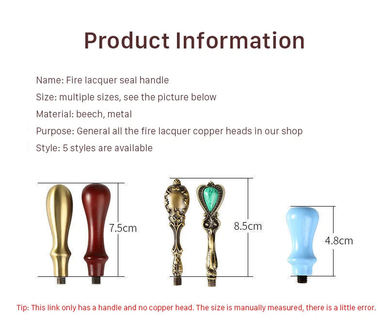????Технические характеристикиНаименование: Ручка для уплотнения лакаРазмер: несколько размеров s, см. Картинку нижеМатериал: бук, металлНазначение: все медные головки из пожарного лака в нашем магазинеСтиль: Доступно 7 стилей ????Применимые случаи:1. Таможня, безопасность, банковское дело, страхование, суды и другие ведомства. Анти-подделка табака/алкоголя/чая промышленности упаковки, анти-подделка косметики.2. Первоклассное ремесло и подарки, канцелярские принадлежности, предметы первой необходимости, ремесленные подарки, приглашения.3. Для важных документов и личных сувениров, чтобы избежать кражи, а также для уплотнения объекта, должны использоваться уплотнительный воск и специальное уплотнение.4. Персональная ручная работа, ручная учётная запись, художественные поделки, сухая Цветочная подарочная упаковка и т. д.????Примечание:В связи с различиями мониторов и эффектами освещения реальный цвет товара может немного отличаться от цвета на фотографиях. Спасибо!Возможны отклонения в 1-3 мм вследствие измерений вручную.