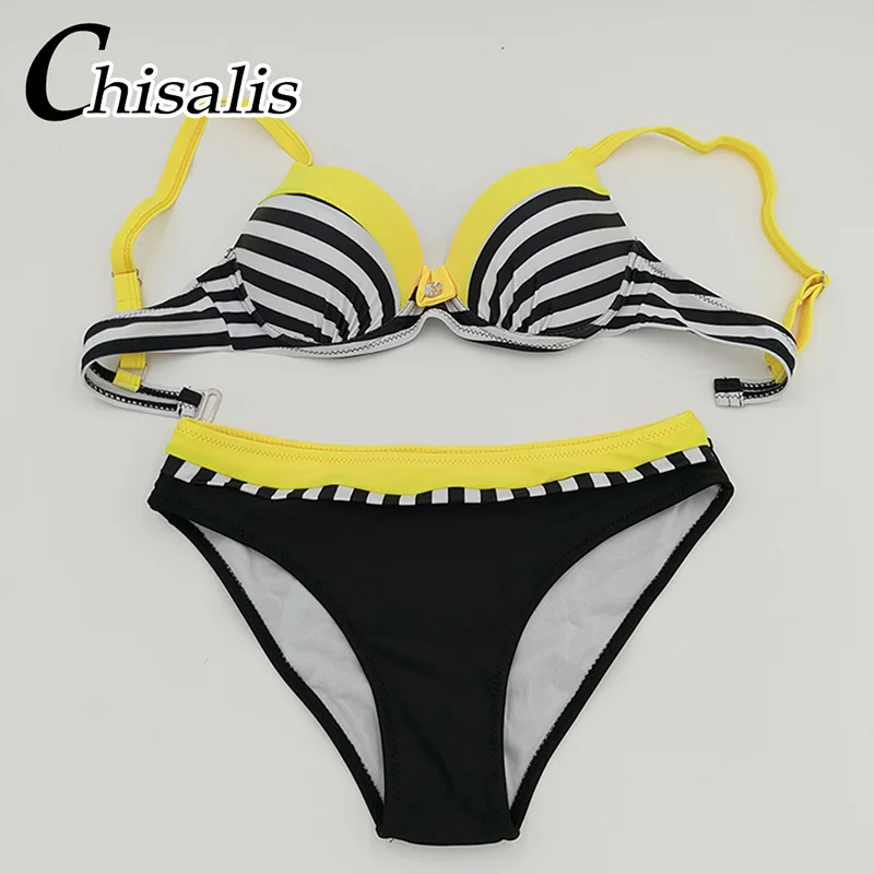 Бикини пуш-ап, сексуальный женский купальник в полоску, лоскутный к...