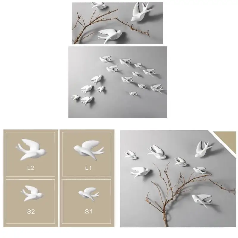 Современные креативные белые 3D настенные украшения в виде птиц, ук...
