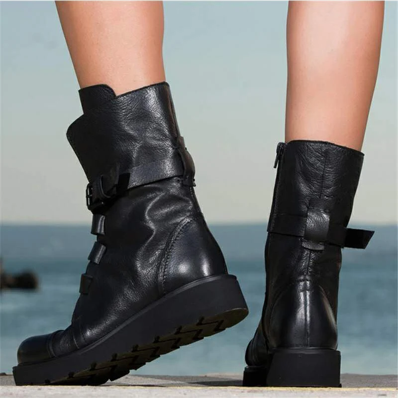 Сапоги женские кожаные до середины икры, с круглым носком, на платформе, Размеры 35-43