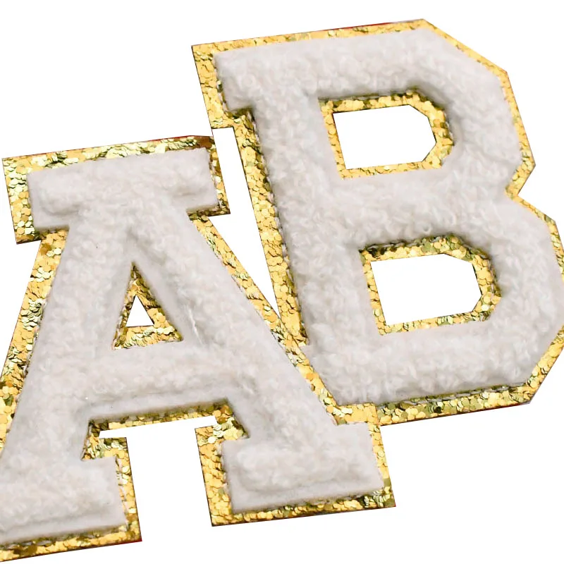 Белая искусственная 26 букв, блестящие Вышитые нашивки из синели, вышивка металлическими буквами, вышивка, аппликация, Детские нашивки