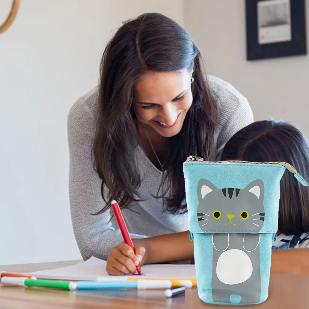 Оригинальный тканевый чехол для карандашей с выдвижным рисунком кош...