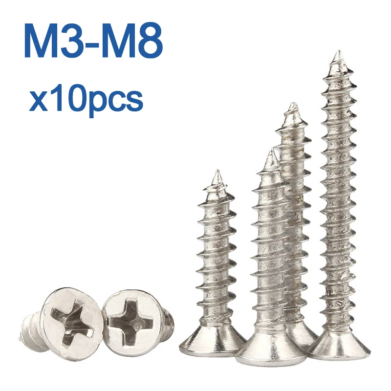 Саморезы с потайной головкой и крестообразным шлицем, M3, M3.5, M4, M5, M6, M8, мебельный винт Phillips из нержавеющей стали, 10 шт.лот