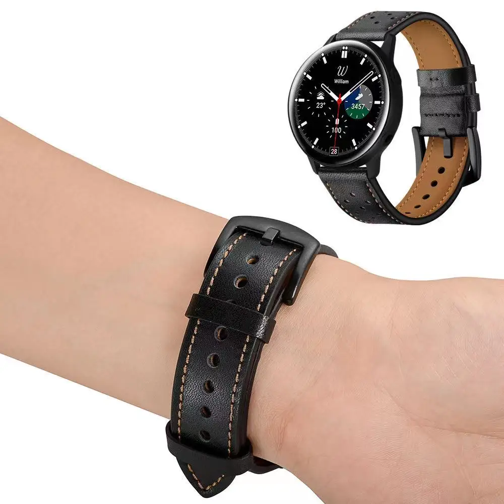 Ремешок кожаный для смарт-часов Samsung Galaxy Watch 4 Classic, Воздухопроницаемый браслет для Galaxy watch 4 40 мм 44 мм, 46 мм