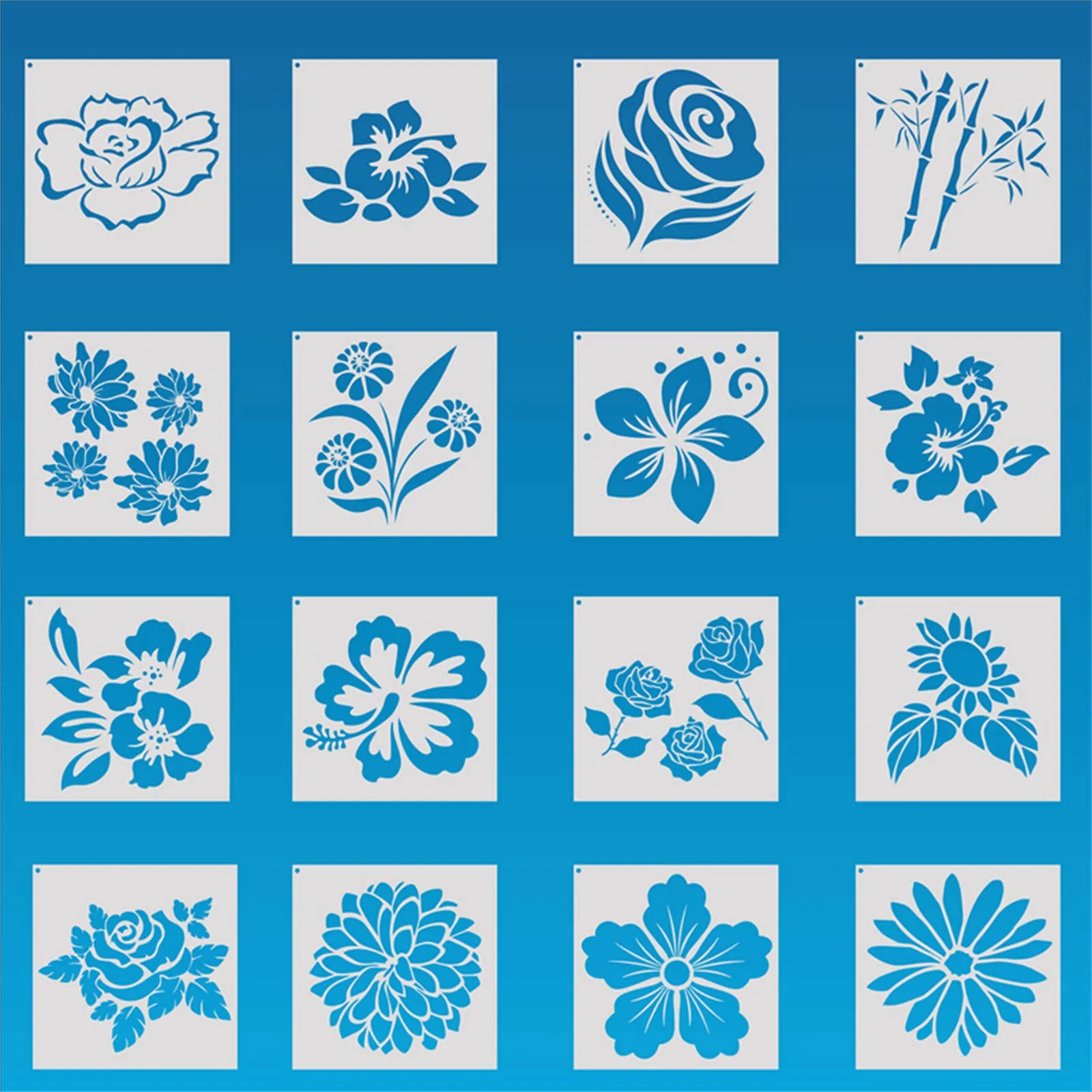 16 шт.компл. 15 см, цветы, листья, символ сделай сам, слойные трафареты, Настенная картина, искусственные декоративные Шаблоны