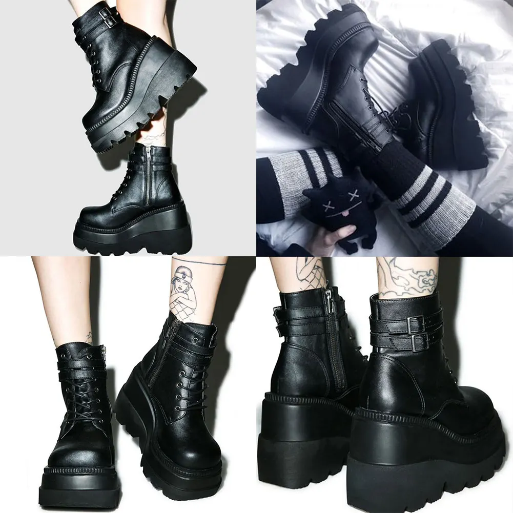 Ботильоны женские, на платформе, на высоком каблуке, в готическом стиле, большие размеры 43, для косплея, Осень-зима
