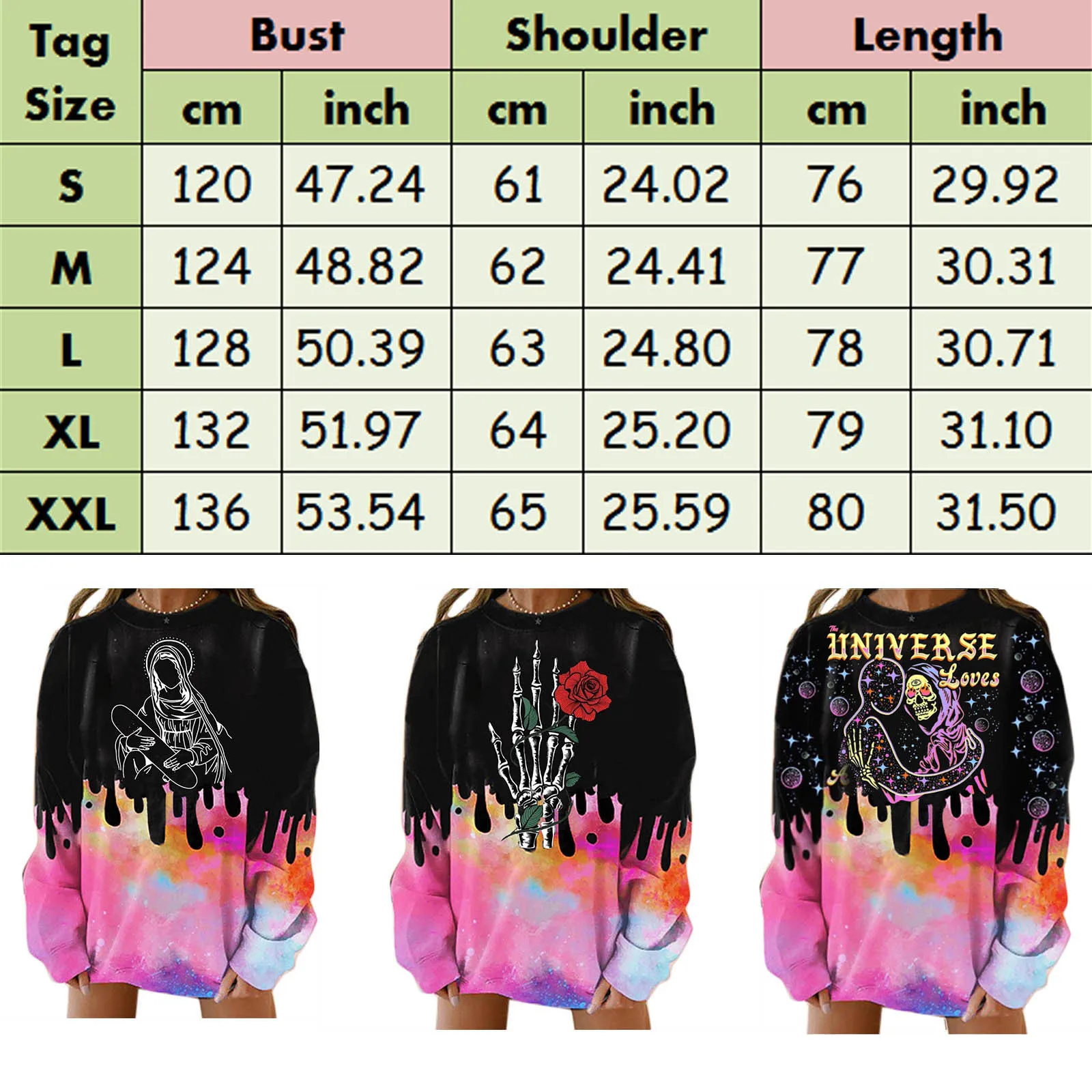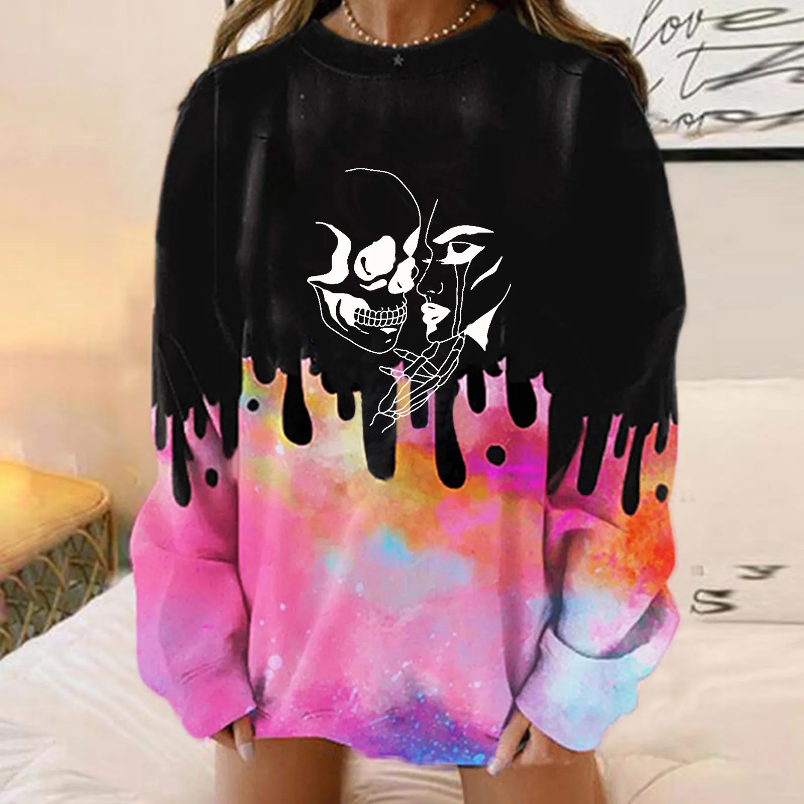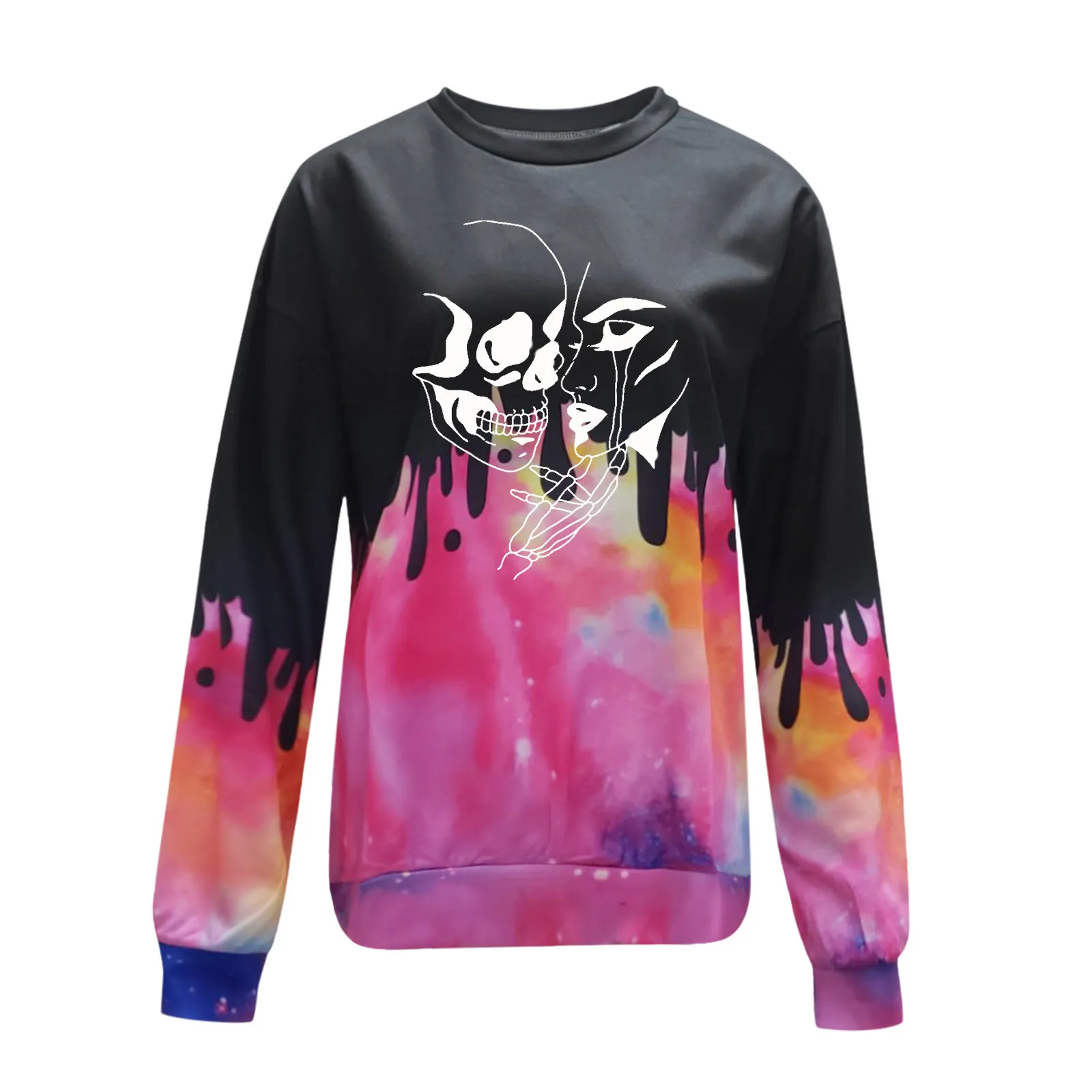 Свитшот женский Y2k, с принтом в стиле Хэллоуин, с цветными блоками, свободный, с длинным рукавом, круглым вырезом, #1