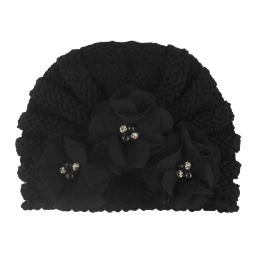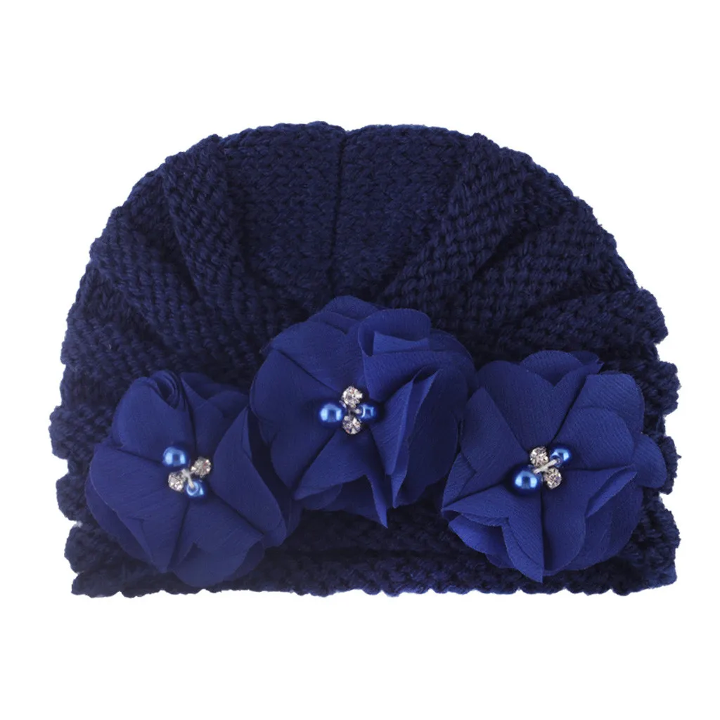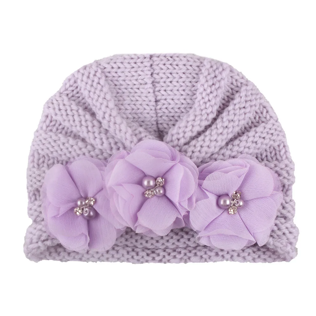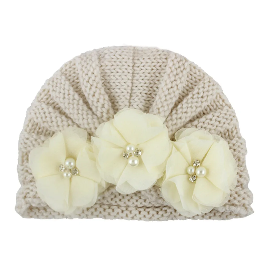 Детская вязаная шапка-тюрбан, зимняя шапка для новорожденных мальчиков и девочек, теплые шапочки-бини с цветами и бусинами, реквизит для детской фотографии, аксессуары
