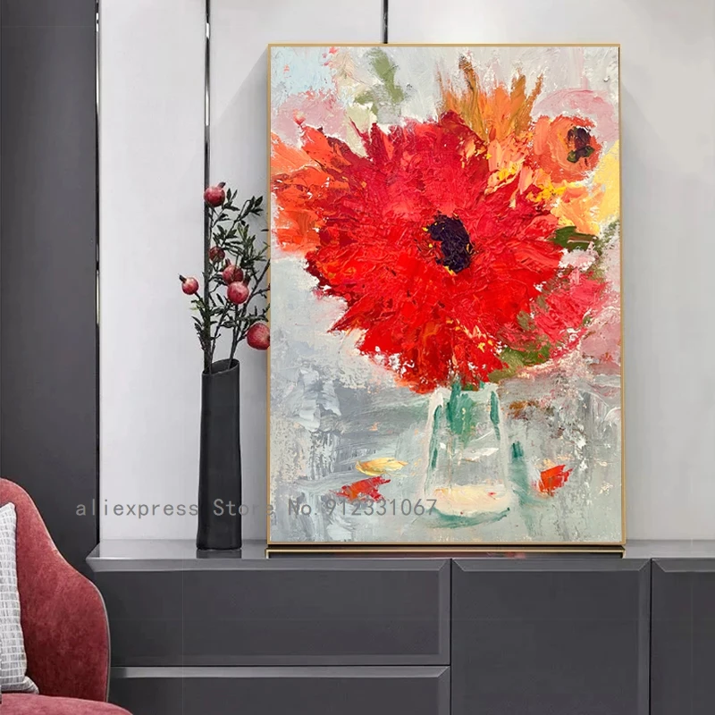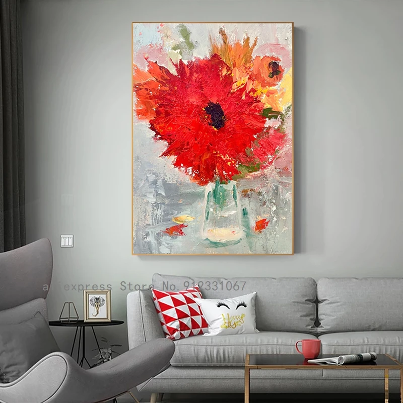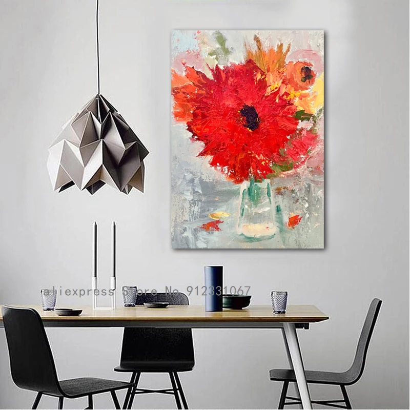 Настенный постер с красными цветами, картины для гостиной, картина маслом, напечатанная на холсте, Современный домашний декор, красочные картины