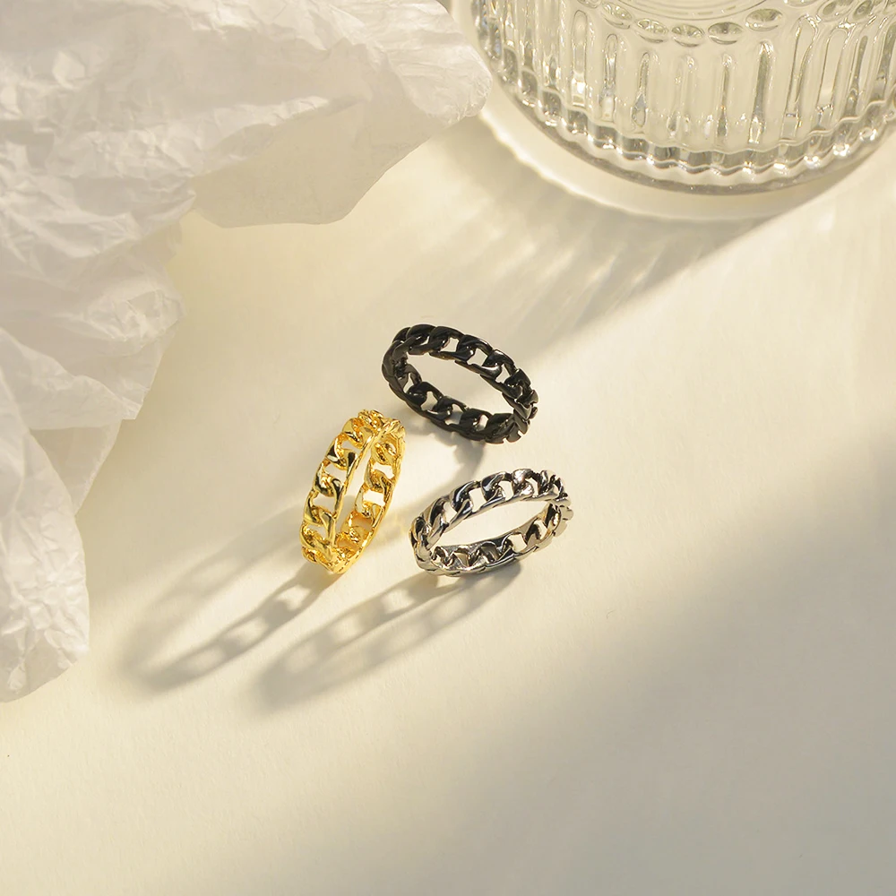 Название:3 цвета, панк кольцо с цепочкой, Трендовое звено, Черное золото, серебристый, винтажные кольца для мужчин и женщин, рок-ролл, вечерние ювелирные изделия, подарок, оптовая продажа