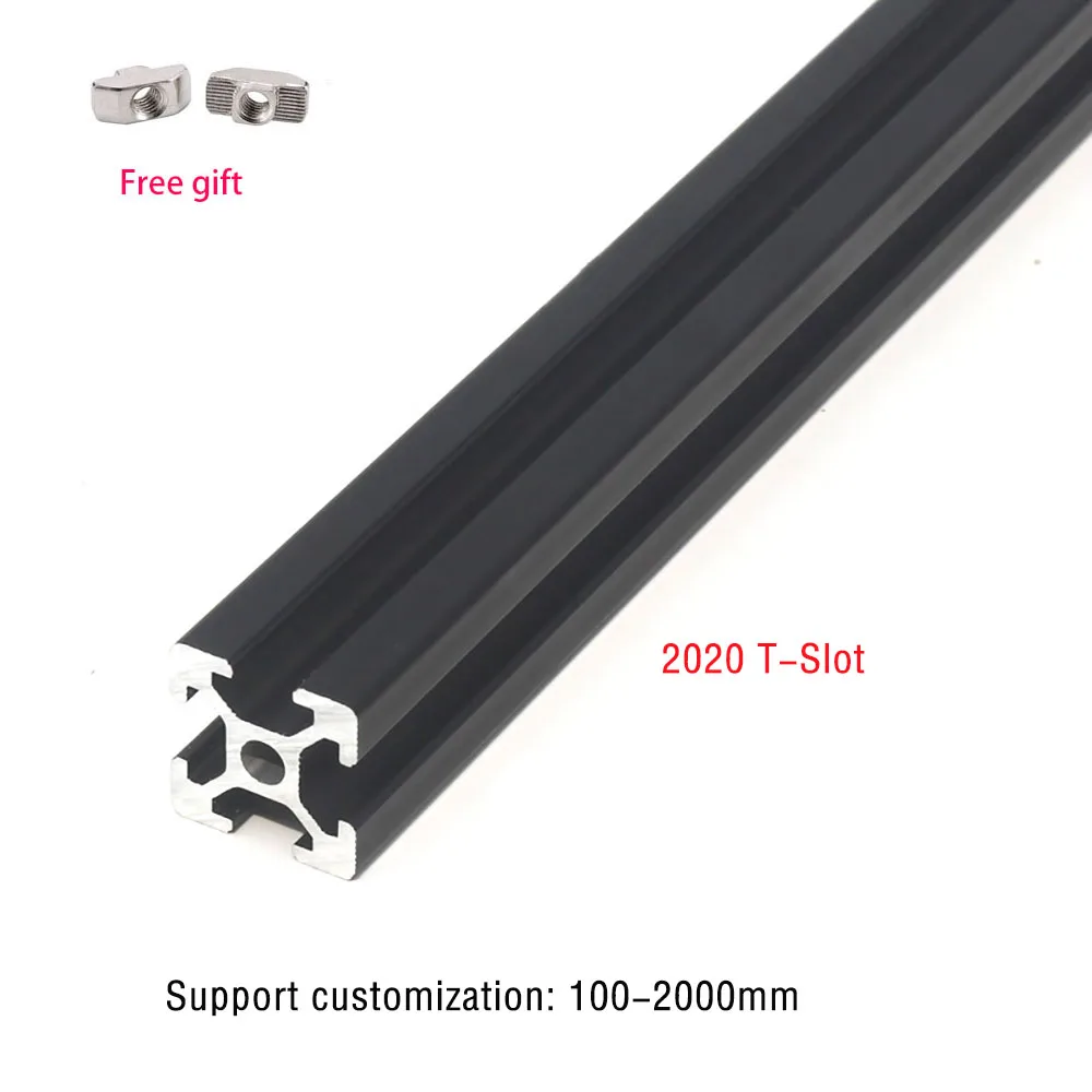Рамка для экструзии алюминиевого профиля с Т-образным пазом 2020 дюйма, черная линейная направляющая европейского стандарта для 3D-принтера с ЧПУ, мебельная ползунок для камеры, 2 шт.