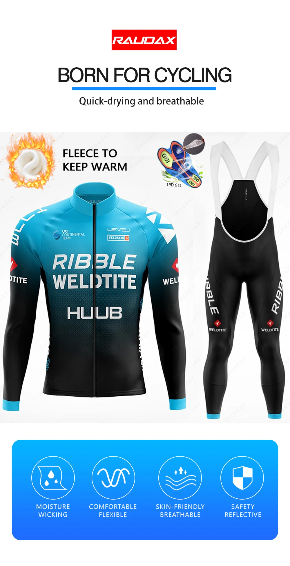 Зимний утепленный флисовый велосипедный комплект Raudax, гоночный в...