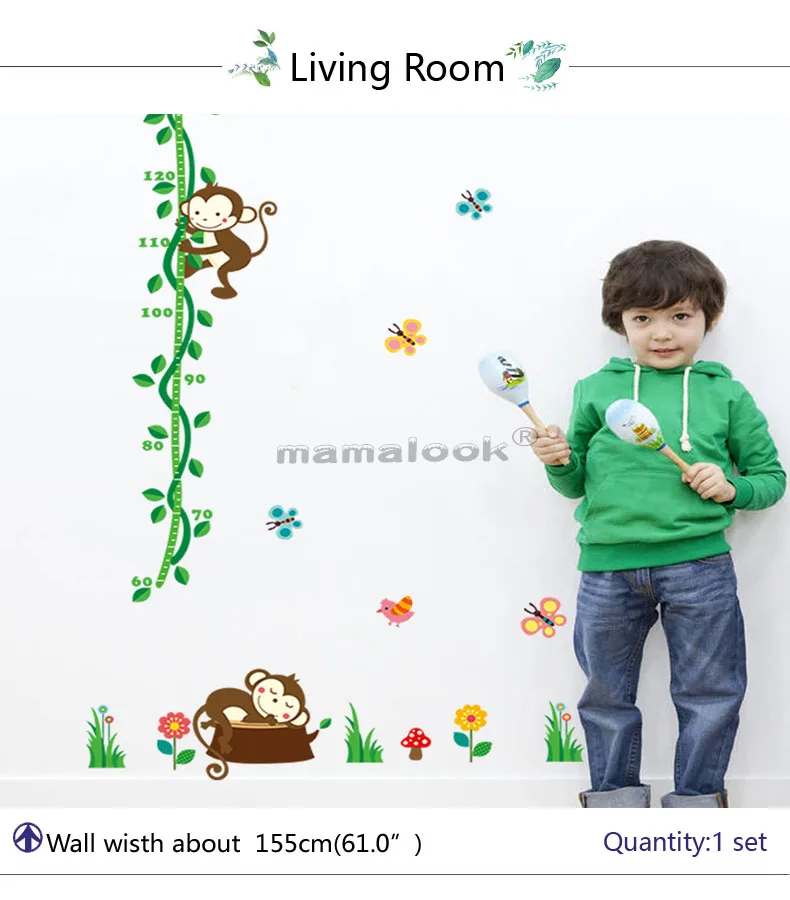Мультяшные спальные обезьяны, измеряющие рост, настенные наклейки д...