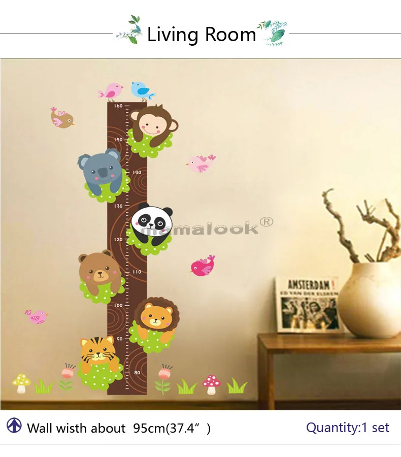 Мультяшные животные, линейка по высоте, Meaure, наклейки на стену д...