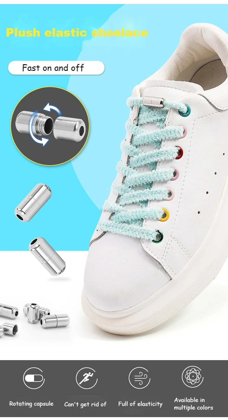 Плюшевая обувь без шнурков, плоские эластичные шнурки без шнурков, шнурки для кроссовок, для детей, для взрослых, быстрая обувь, кружевные резиновые шнурки для шнурков