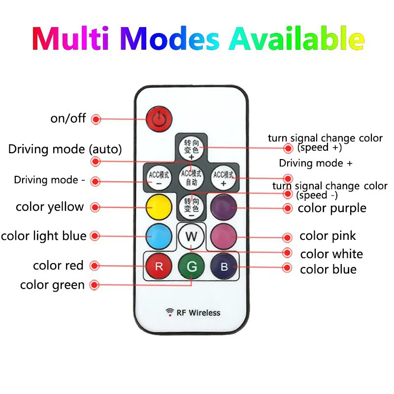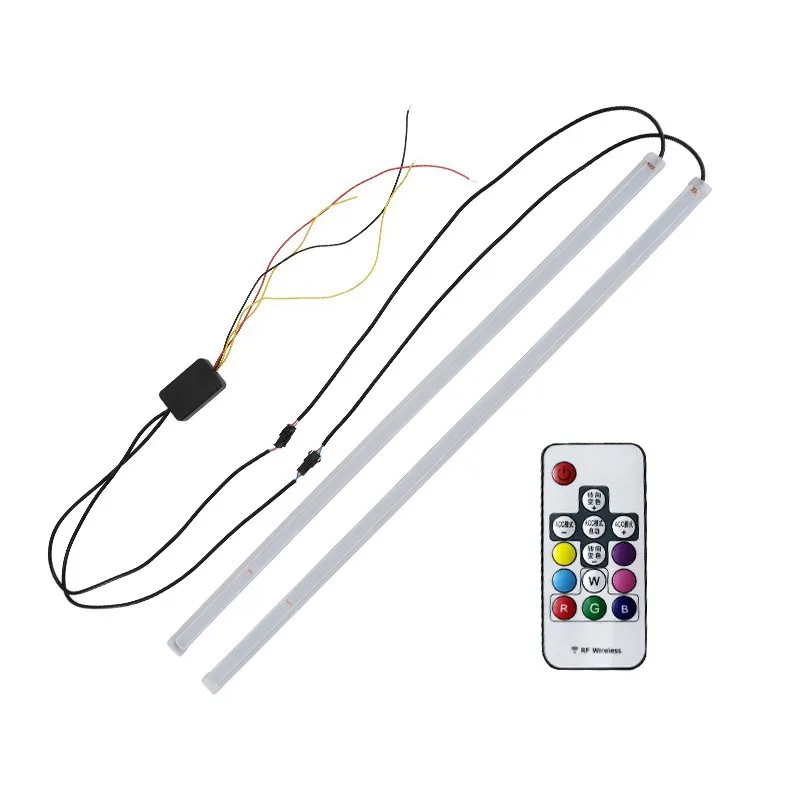 ПараметрыТип: Гибкий Мягкий светодиодный светильникМатериал: АБС + силиконСветодиодный Тип: 2835 SMDВходное напряжение: 12 В постоянного токаСветильник Цвет: разноцветный "Красный-зелёный-желтыйСветильник Длина: 45 см/60 смПодходит для: универсального автомобильного стиляОсобенности:Светодиодный гибкий мягкий светодиодный светильник DRL для автомобиля.Можно одеть фары, похожие на оригинальный эффект.Водонепроницаемый-как для внутреннего, так и для внешнего использования автомобиля, просто установка.Применение:Ангел глаз, головной светильник поворотный светильник.Во время вождения светильник RGBПри повороте светильник струится RGB (можно выбрать с помощью пульта дистанционного управления)Проводное Соединение:Красный провод: подключение к фары или ACC(+)Черный провод: подключение к наземный светильникЖелтый провод/зеленый провод: подключение к сигналу поворота (+)Посылка:2 шт. DRL светодиодный светильник с полосками