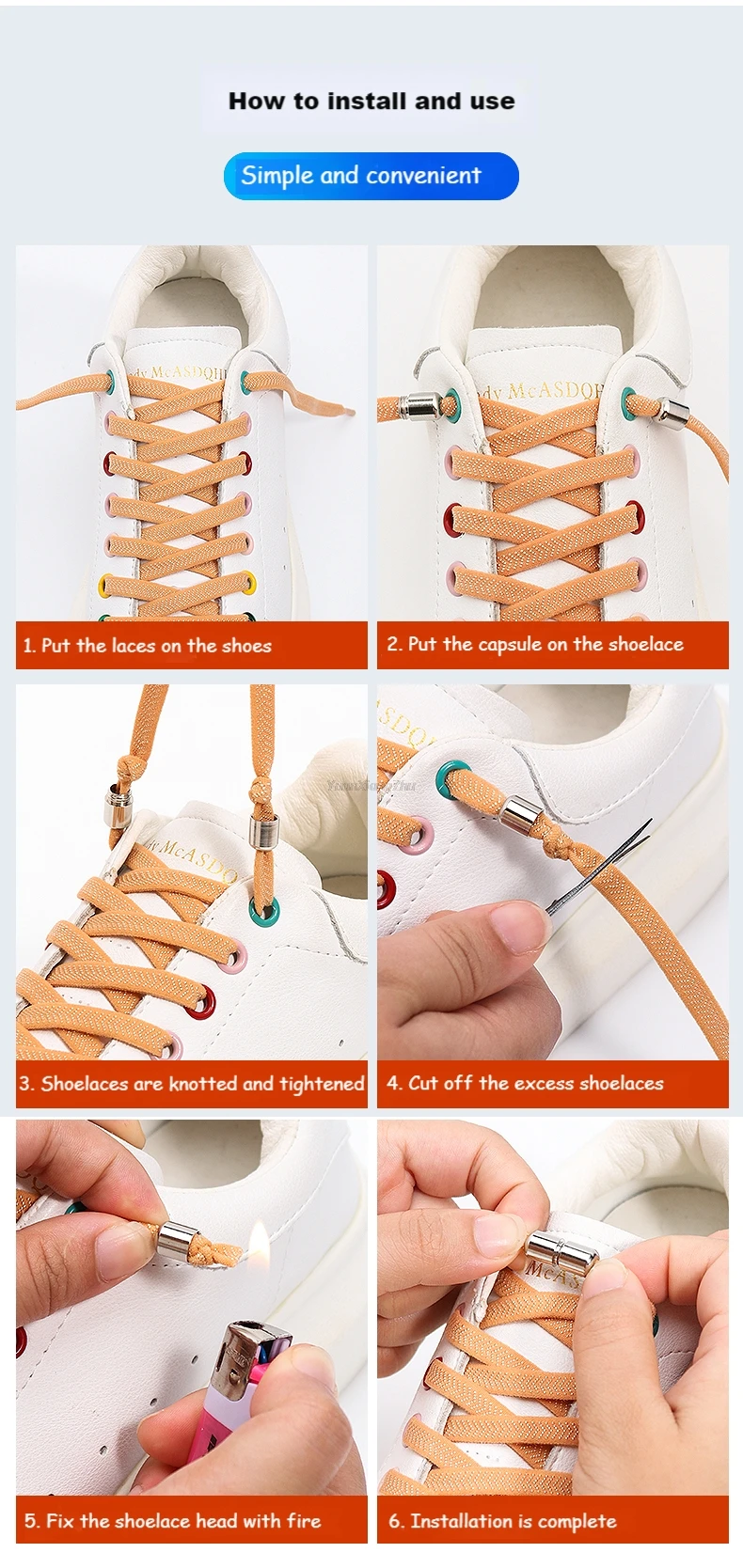 Простая установка: один размер подходит всем (детям и взрослым), быстро устанавливается, прост в использовании. Каждая пара подходит для шнуровки 1 пары обуви. Простые инструкции по установке.