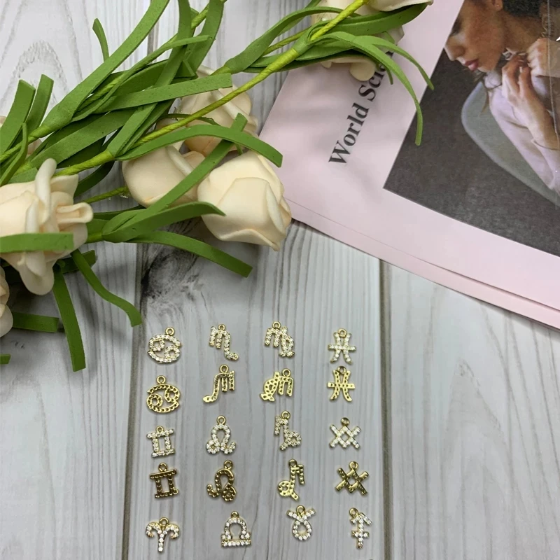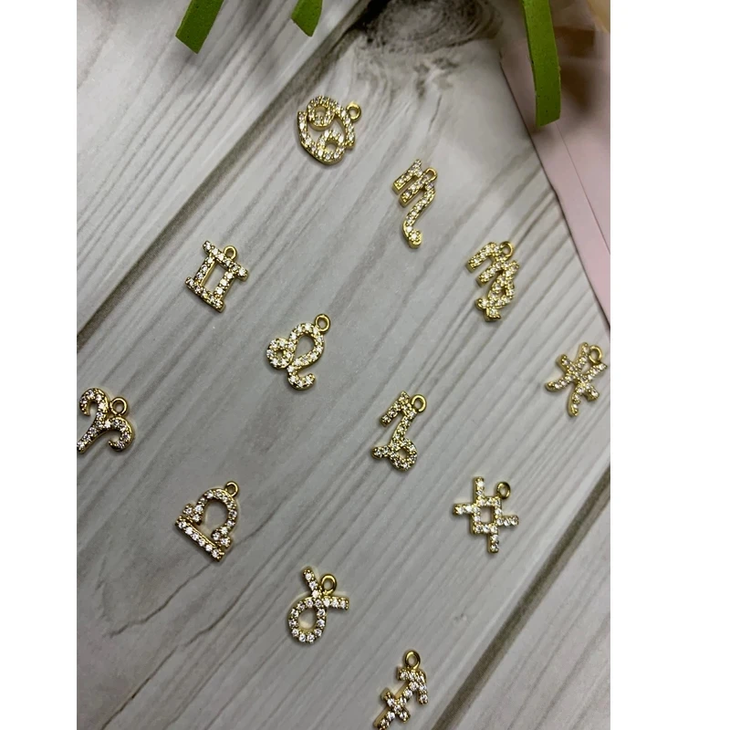 Накладные ногти для украшения ногтей, из сплава золотого созвездия, буквы художественный амулет, подвеска-амулет с кристаллом Стразы