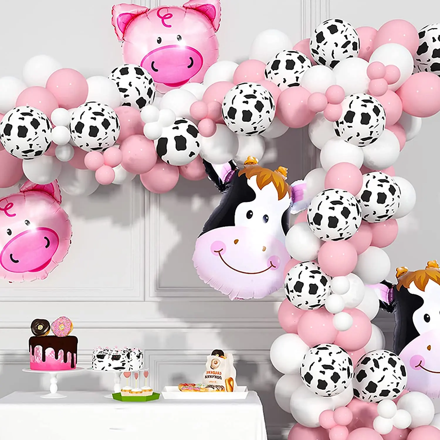 142 шт. белые розовые шары гирлянды арочный комплект, 12 дюймов шары с принтом коровы для фермы, дня рождения, коровы, фермы, декор для тематической вечеринки
