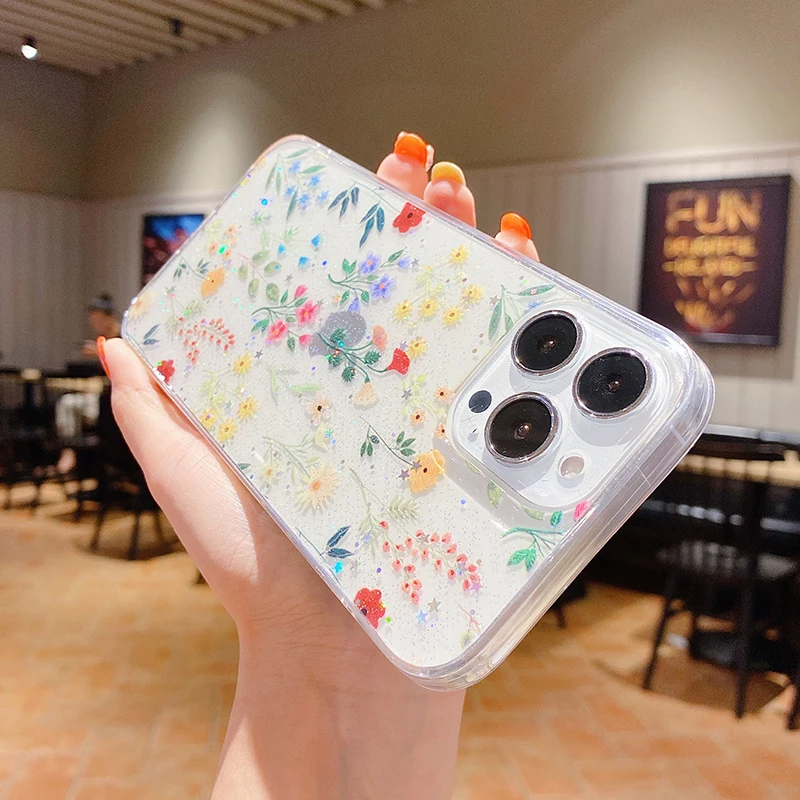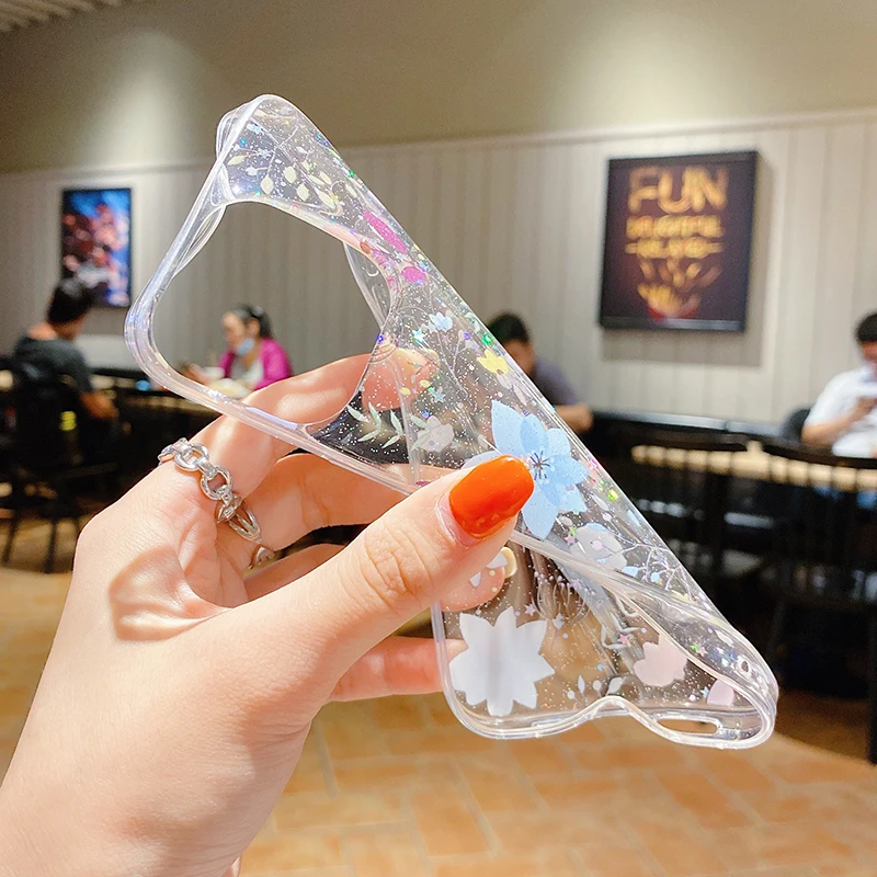 Яркий прозрачный чехол с цветами для Samsung S21 S20 Ultra A72 A52 A32 A22 A21S Note 20 мягкий чехол с блестками и цветами