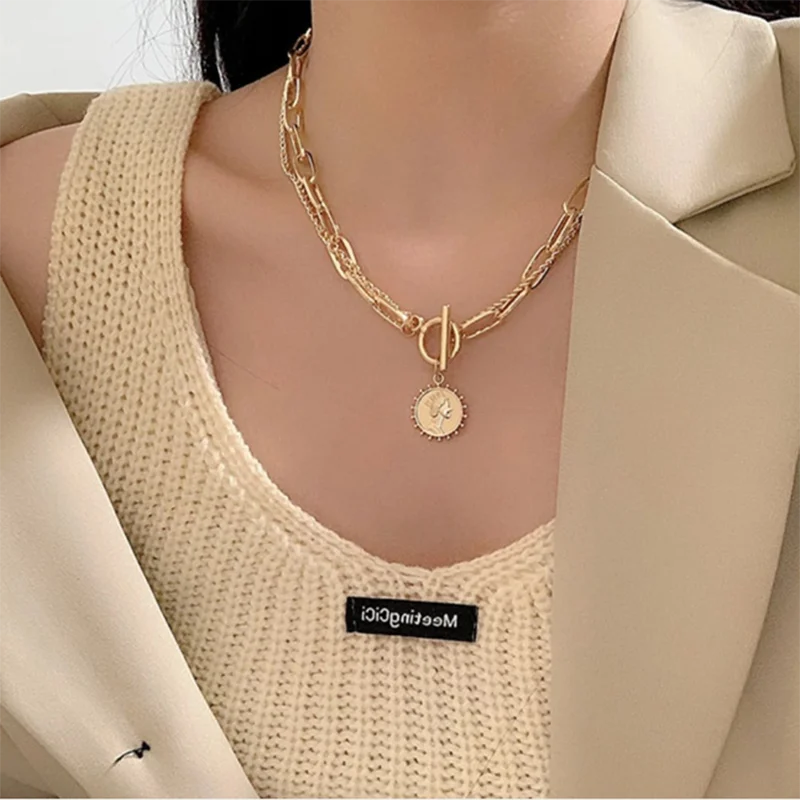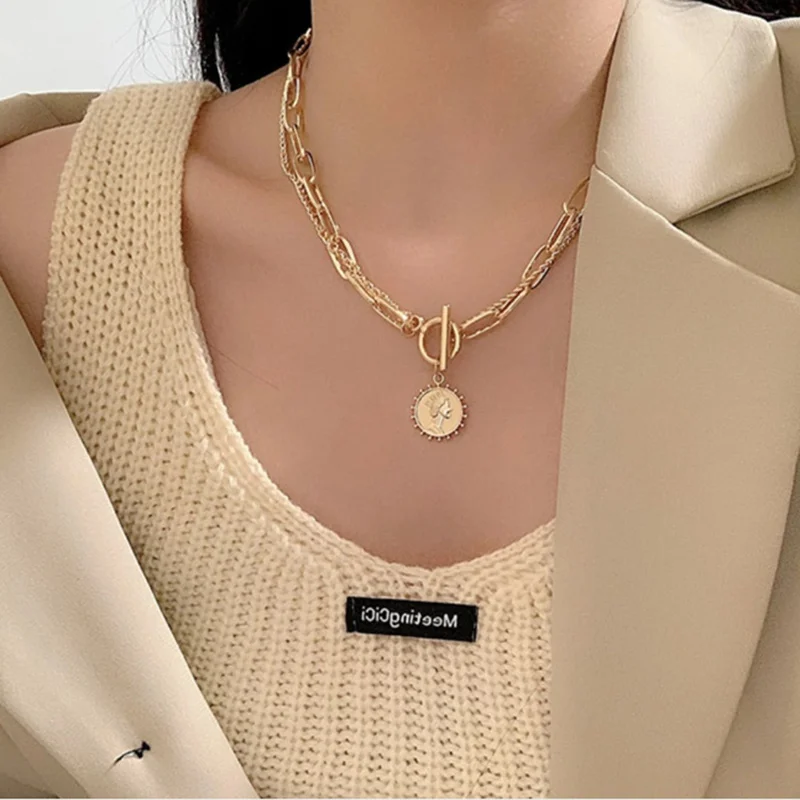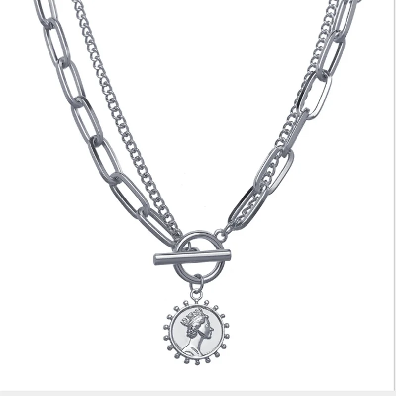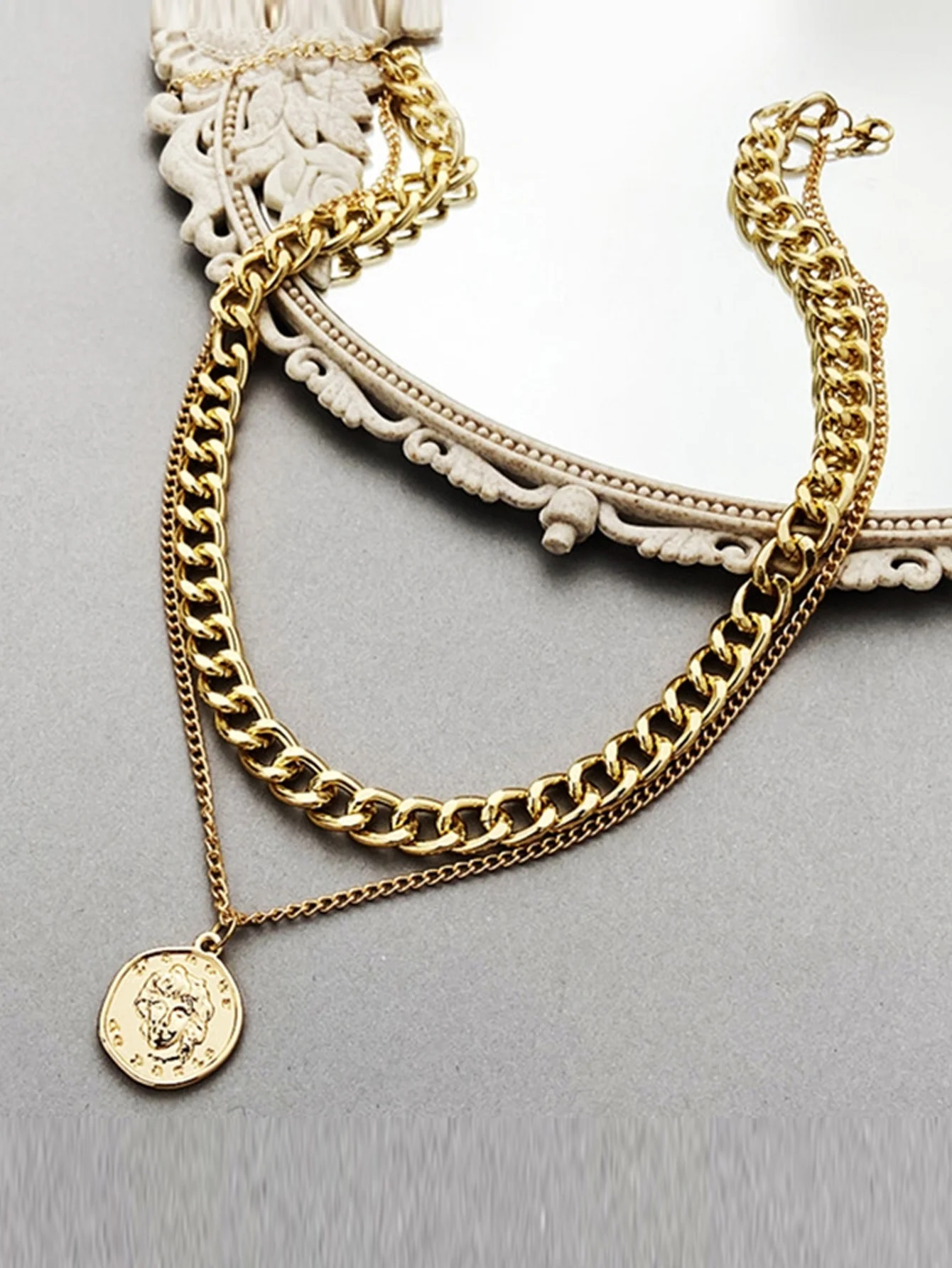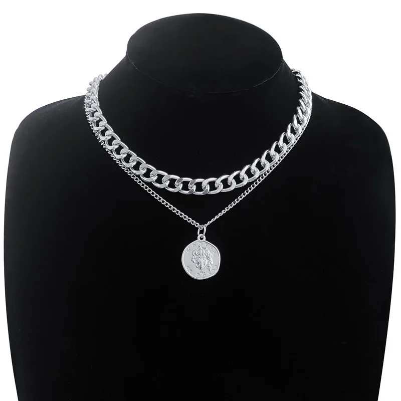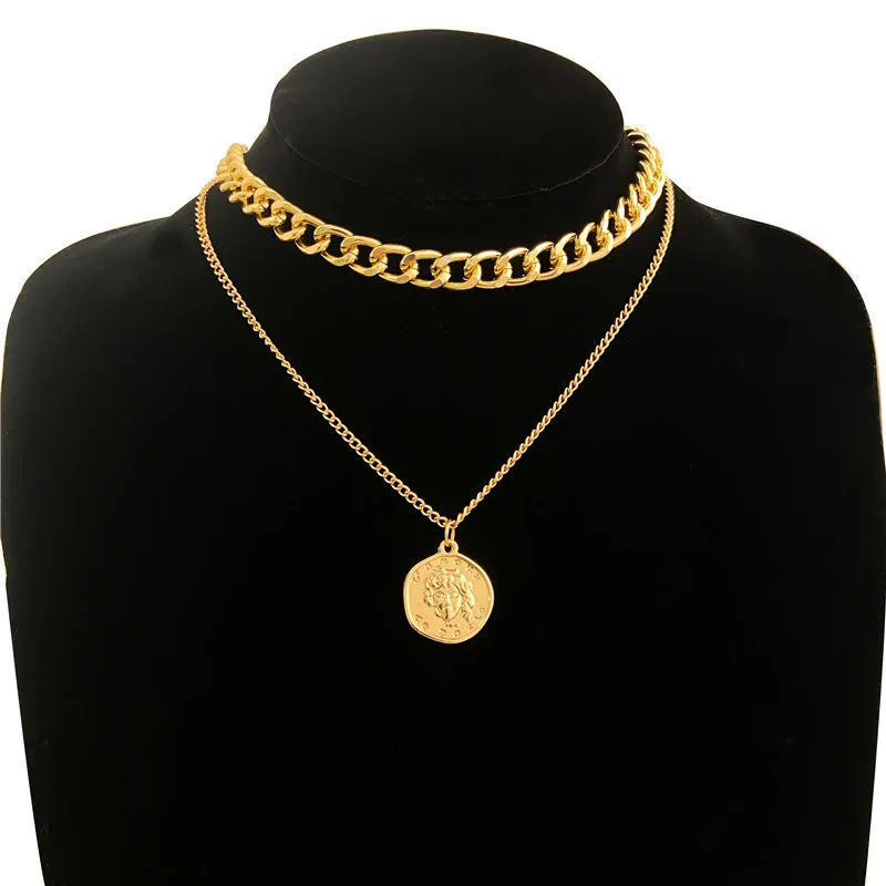 Женское колье-чокер, многослойное винтажное ожерелье золотого и серебряного цвета, массивная цепочка с портретом, 2021