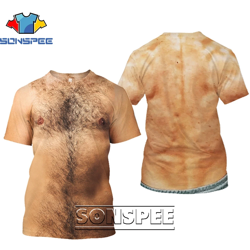 Мужская футболка с коротким рукавом с 3D грудным принтом, интересна...