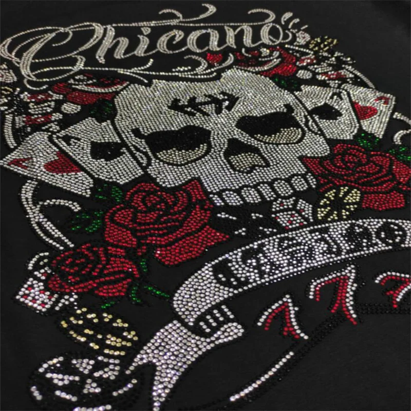 Черный цвет цветок и череп крутые Женские топы со стразами камни вы...