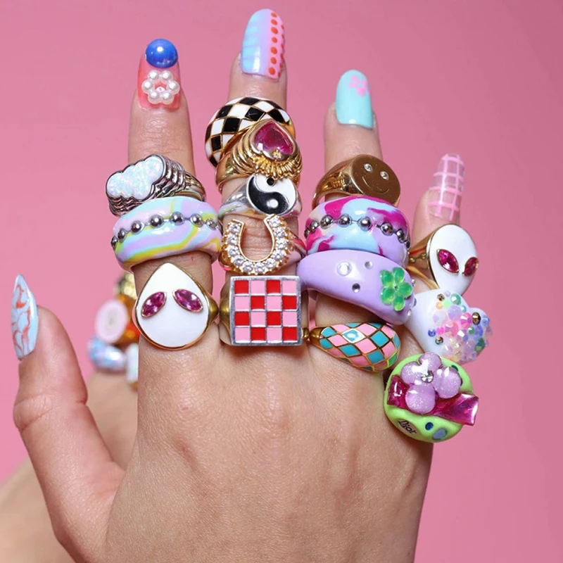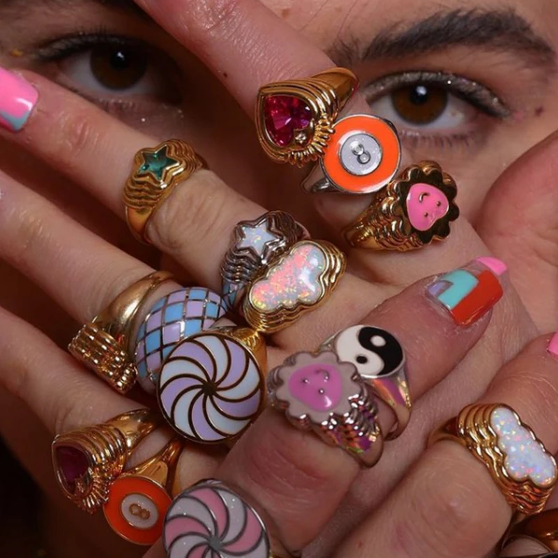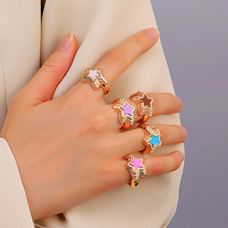 Женское эмалированное кольцо со звездами Y2K, модное элегантное кольцо в Корейском стиле, металлические кольца контрастной линии с капающей нефтью, ювелирные изделия для пар, оптовая продажа