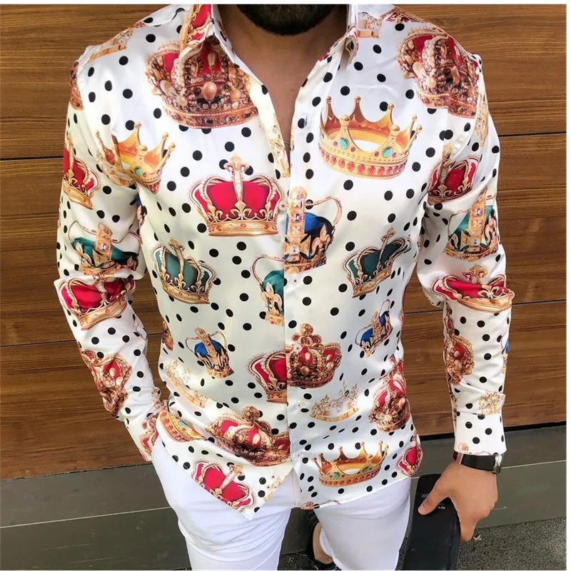 Новинка 2021, роскошная мужская Облегающая рубашка с длинным рукаво...