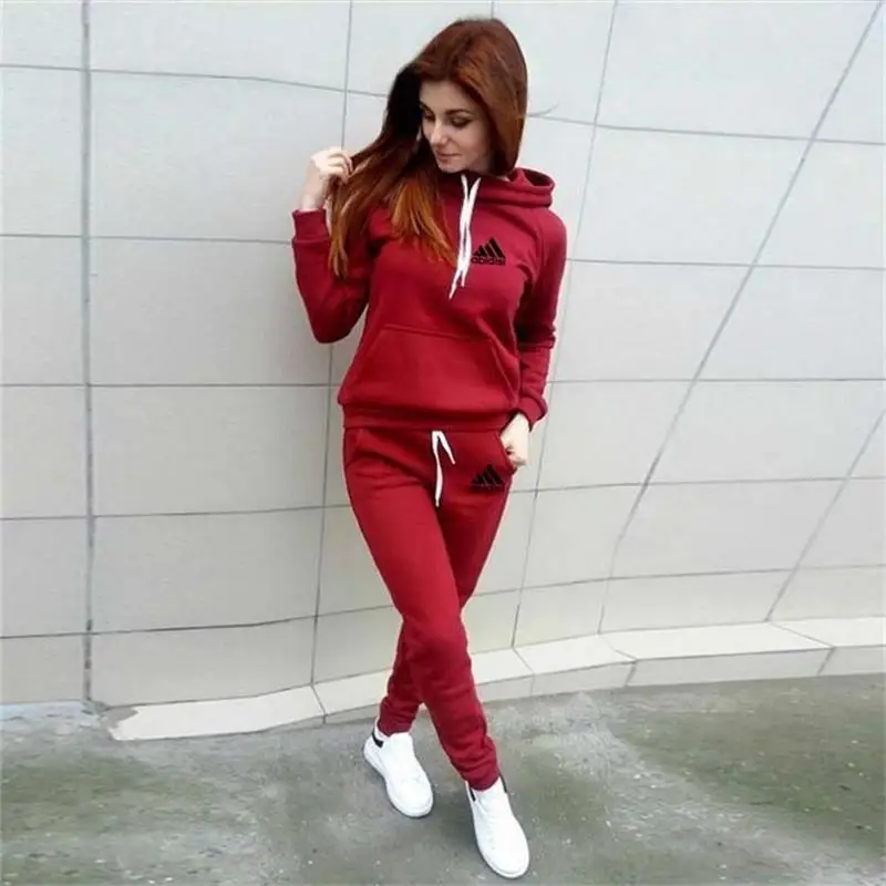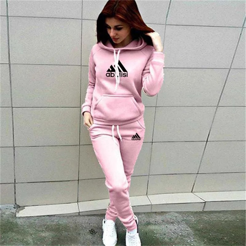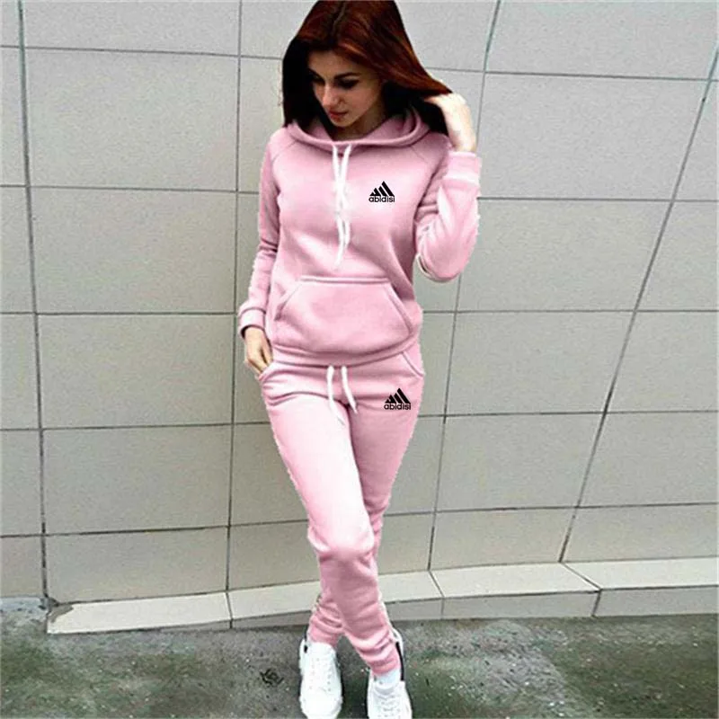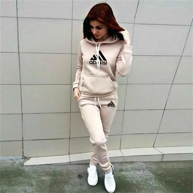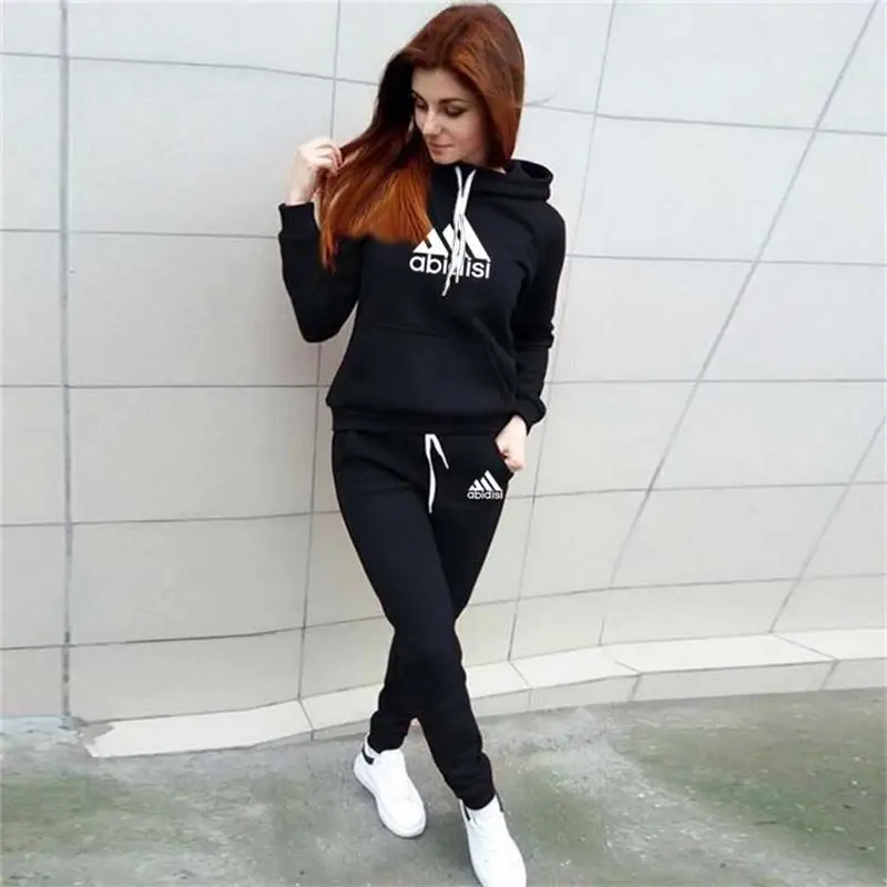 Новинка 2021, женский спортивный костюм с капюшоном, зимний комплект из двух предметов, Женский костюм с толстовкой и брюками, спортивный костюм с принтом, одежда с брюками