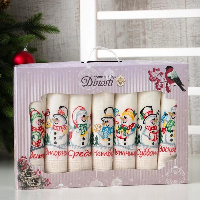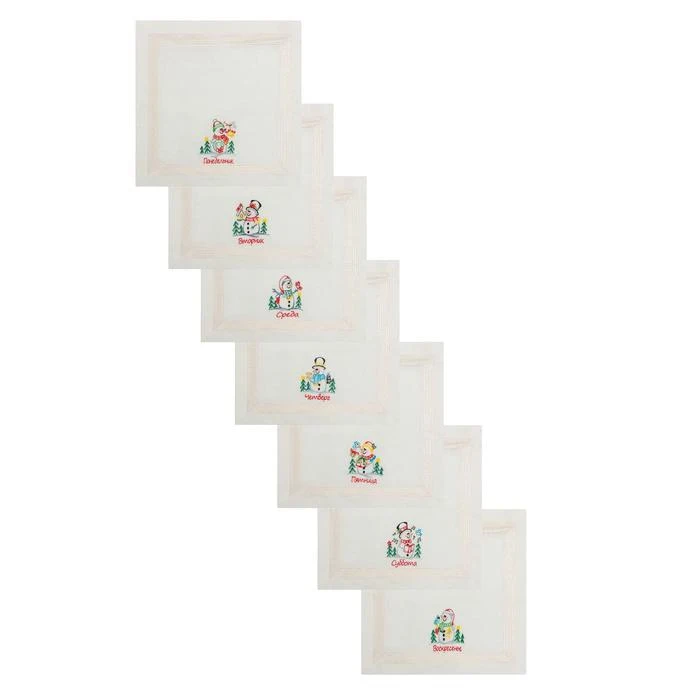 Набор льняных полотенец Снеговики 42х42см-7шт, лён 50%, хлопок 50%, 180гм2 7108968
